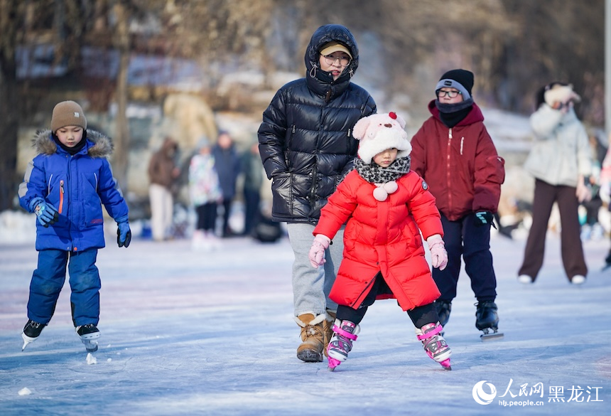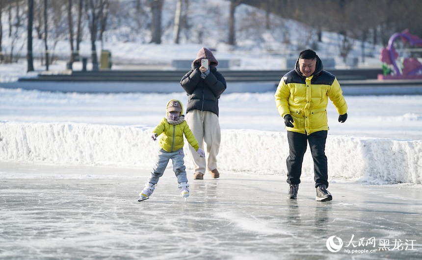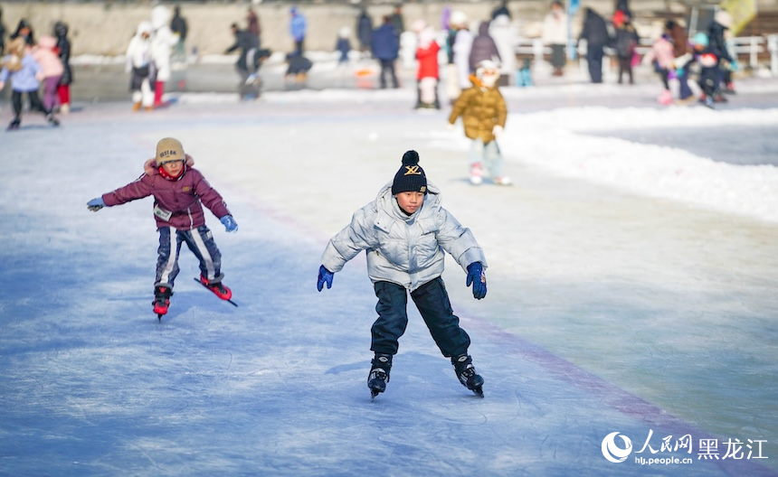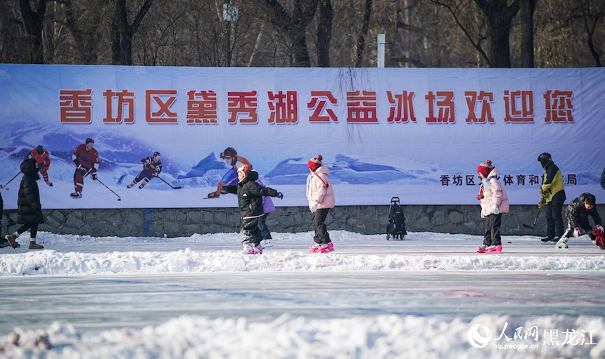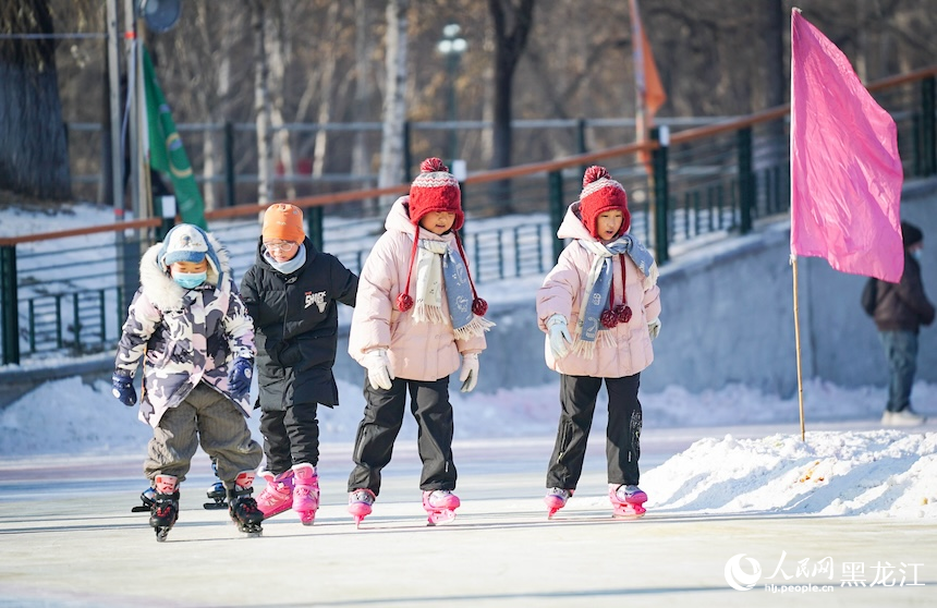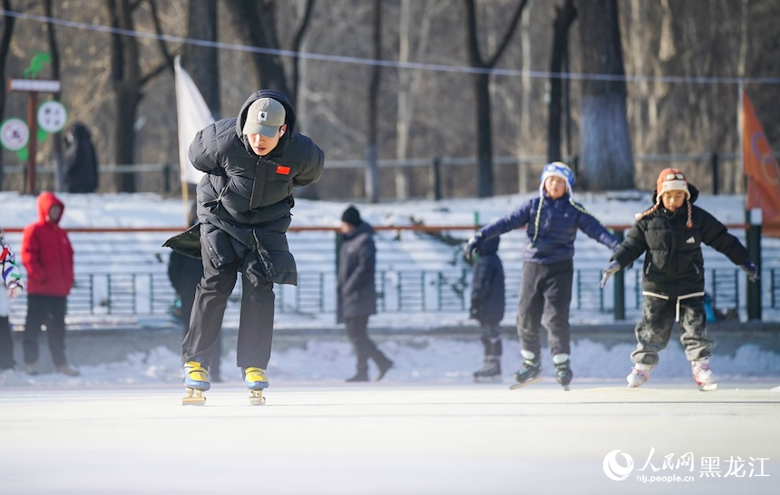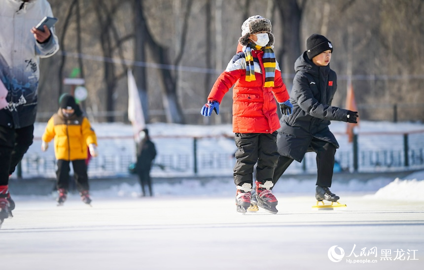 人民网哈尔滨12月14日电正值周末,在哈尔滨市黛秀湖公园和丁香公园的公益冰场内,前来滑冰的中小学生络绎不绝,他们踩上冰刀,踏进冰场,畅享冰雪运动带来的乐趣。人民网记者苏靖刚摄影报道