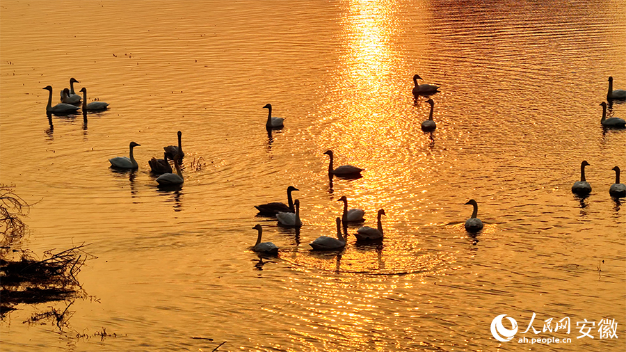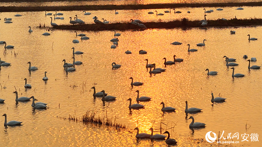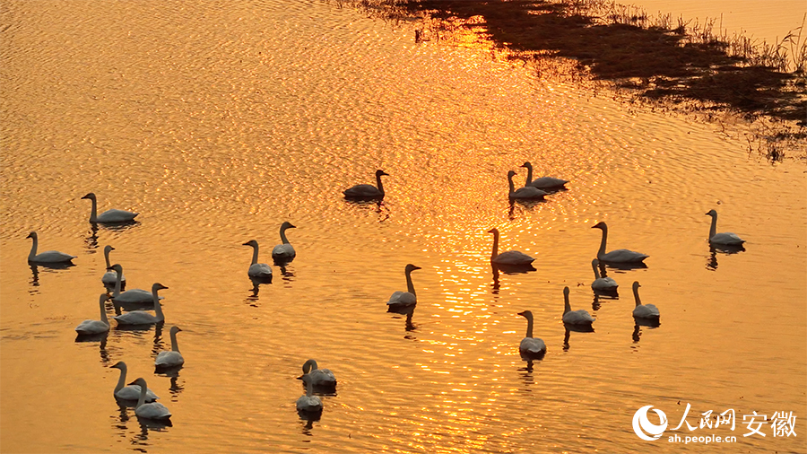 人民网合肥12月14日电(郭昊)近日,安徽省合肥市肥东县十八联圩湿地迎来大批小天鹅。日出时分,成群的小天鹅或悠然游弋,或展翅翱翔,宛若一幅生态画卷。近年来,肥东县十八联圩湿地环境持续改善,已经成为众多候鸟迁徙途中的理想停歇地和越冬地。合肥十八联圩湿地内,小天鹅正在栖息。人民网郭昊摄
