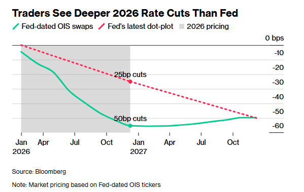 这对债券交易员来说至关重要。他们目前正押注美联储明年将降息两次以支持就业市场和前景——尽管当前美国通胀仍居高不下。这一降息次数预估比美联储上周点阵图中暗示的还要多出一次。