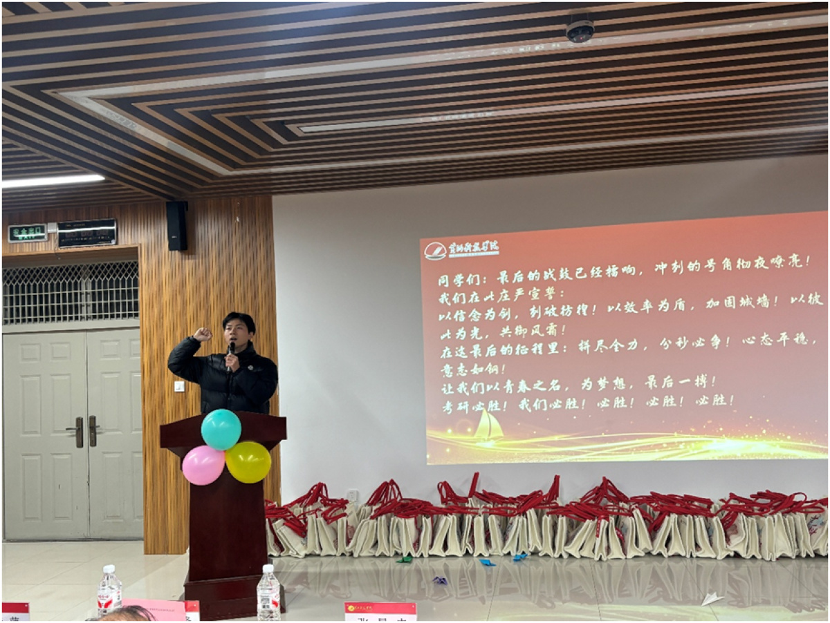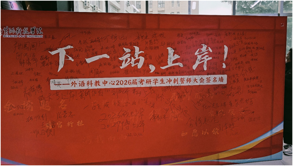 笔锋淬火,书卷为阶。当考研复习进入最后的冲刺阶段,12月12日,黄河科技学院外语科教中心为2026届考研学子精心举办了一场考研冲刺誓师大会。师生齐聚,共同参与了一场以学生为中心、充满人文关怀的仪式,为最后的征程注入了温暖而坚定的力量。
