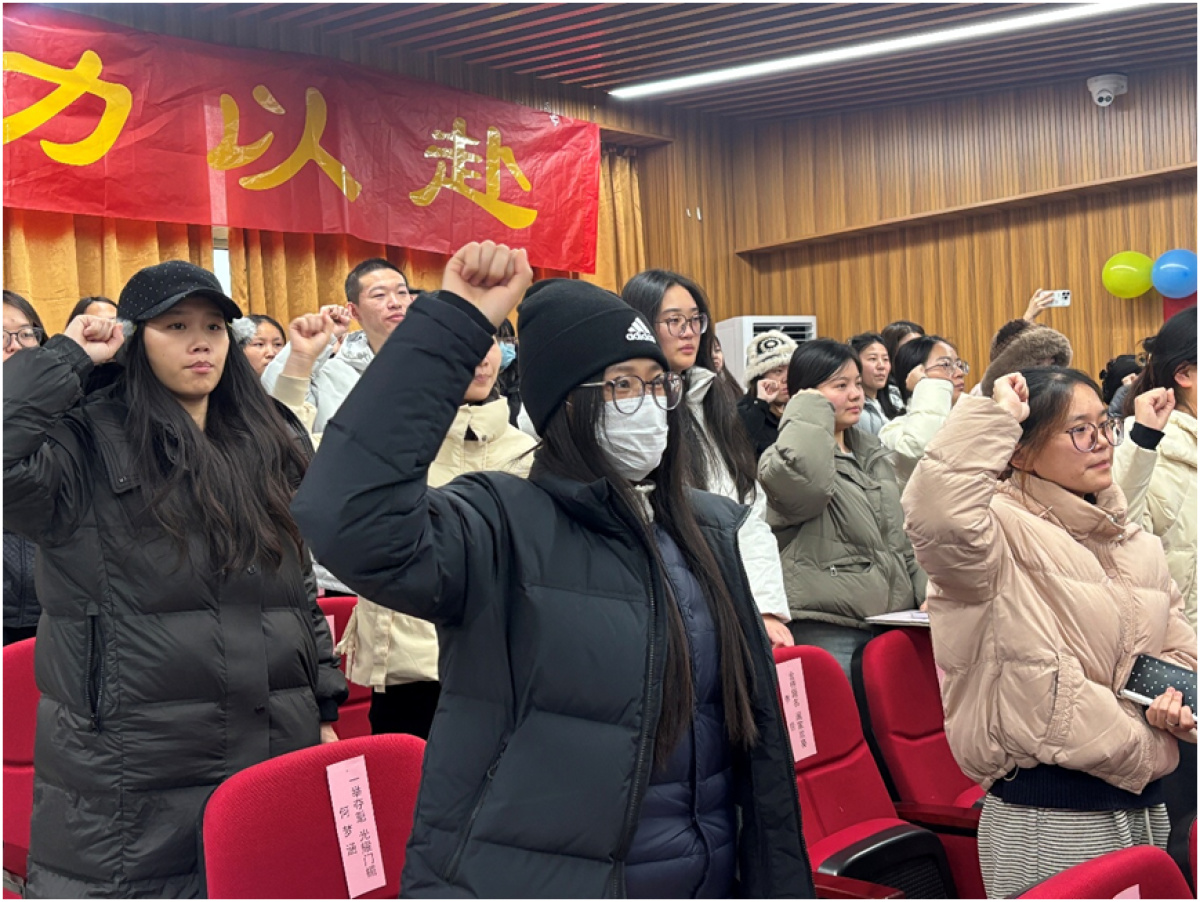 随后进行的集体宣誓将大会推向高潮,“拼尽全力,分秒必争!心态平稳,意志如钢!让我们以青春之名,为梦想,最后一搏!”的誓言齐声响起,字字铿锵,凝聚起迎难而上的决心。
