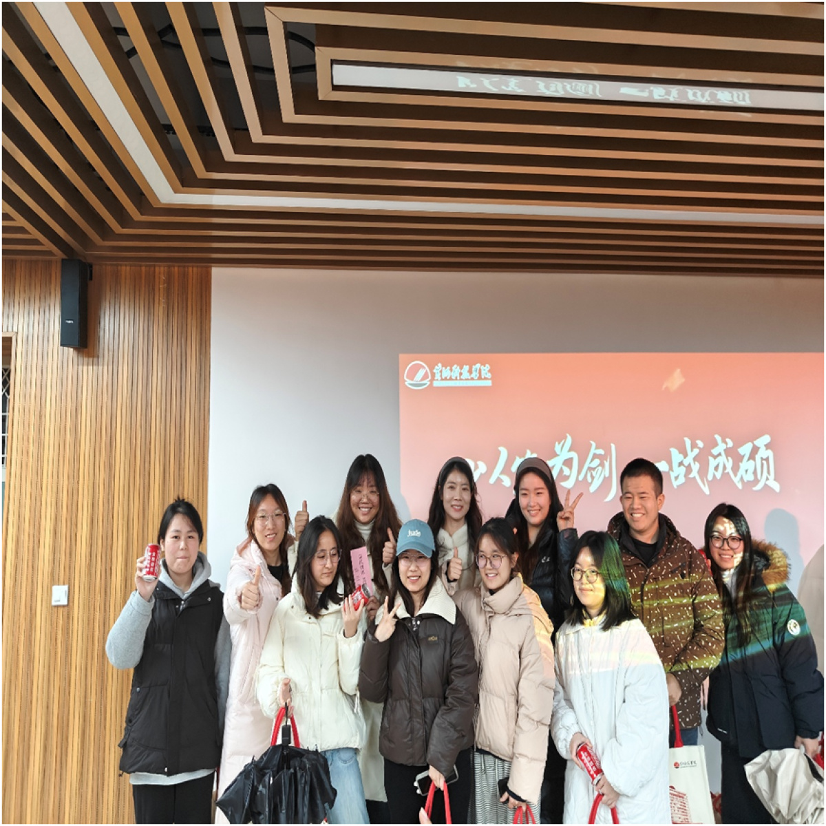 尤为暖心的是,学校和中心为每位学子准备了寓意深长的“考研加油包”与印有“金榜题名”字样和姓名的定制可乐。握着沉甸甸的加油包,许多学子低头注视良久。这份实实在在的礼物,让他们真切地感受到自己并非孤身前行。学院的陪伴与支持,化为了此刻手中可触的温度,成为他们奔赴考场时心底最踏实的力量。
