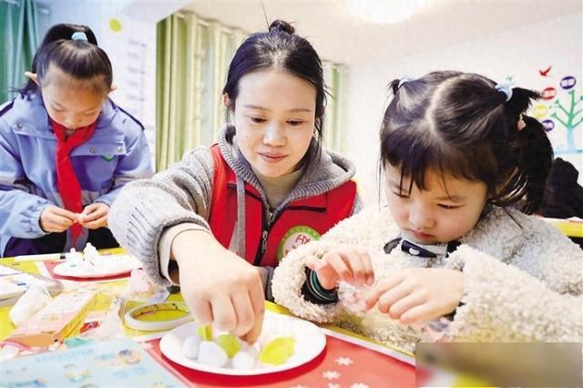 夜幕降临,温暖在社区延续。在肃州区东南街街道金泉路社区儿童服务站,十余名儿童围坐一起,在社工带领下兴致勃勃地做着“暖冬”主题的轻黏土手工。