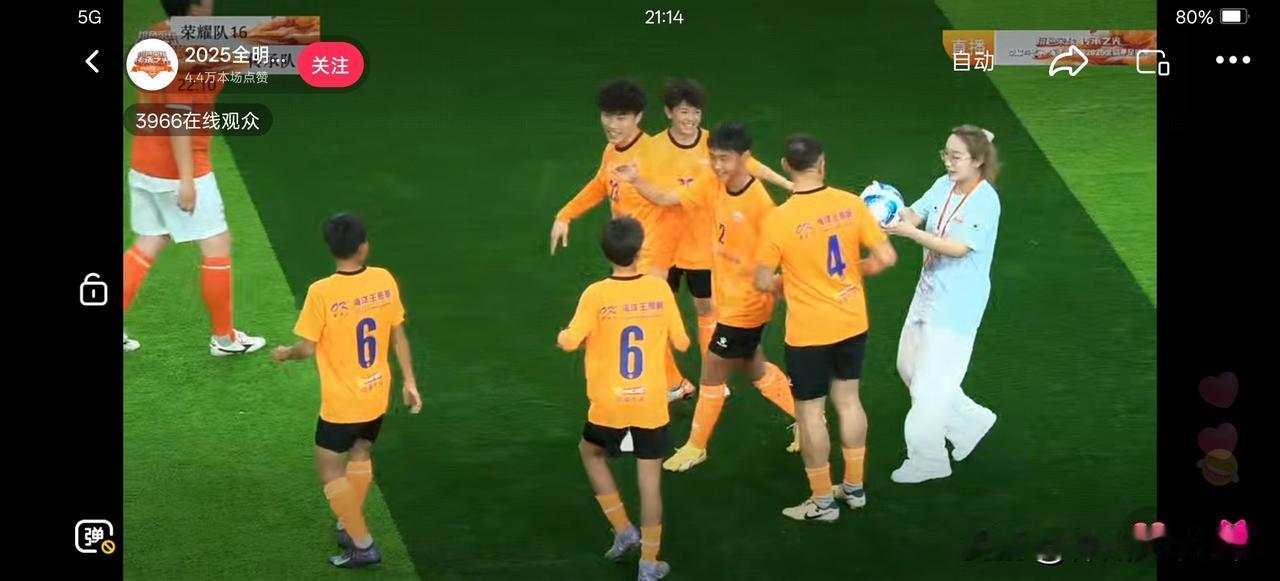 比中超颁奖欢乐10倍!临沂全明星赛:小孩虐惨女门将,黄健翔主持+董老厮社死太好磕,种种迹象简直笑料百出: 1. 家人们谁懂啊!临沂这场全明星赛真的笑不活了!看直播间弹幕本来以为女门将是新疆大美女,结果是北京国安女足的乌乌西柚,180cm大长腿颜值绝了,但和男球员同场竞技,画面又好笑又违和,专业不专业另说,看着就上头! 2. 董老厮真的是来贡献笑点的吧?上场还没捂热乎,就被陈蒲一记铲断直接“放倒”,网友都说这是“点评反噬”现场,名嘴更是急呼陈蒲这下摊上事了,这波操作太秀了🤣! 3. 最真实的来了!荣耀队不仅黄政宇、谢文能过了把门将瘾。且比赛的最后换了几个泰山青训小孩上场,本以为能温柔点,结果照样面对对方女门将毫不客气,专业层面简直“惨不忍睹”,但这种不按套路出牌的“虐菜”,反而更欢乐啊! 4. 黄健翔主持是真会整活,金句频出把氛围拉满,再加上宿茂臻、韩鹏这些老炮破门,巴力斯塔复刻双冠王回忆杀,情怀和笑点直接双丰收! 5. 说真的,这场球别谈专业,就看一乐呵!老的老、小的小,还有名嘴网红说唱歌手华云龙跨界,快乐直接溢出屏幕,比中超颁奖典礼好看100倍,这才是球迷想看的全明星啊。 中超