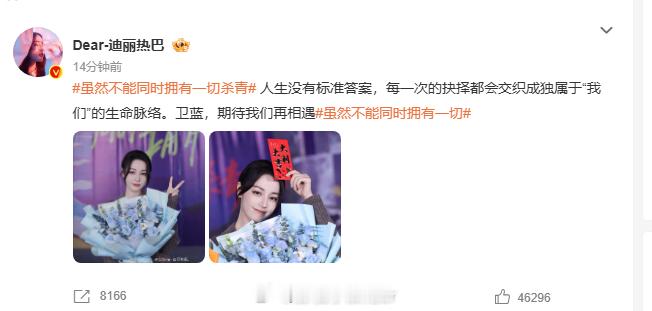 迪丽热巴回应新剧杀青迪丽热巴回应虽然不能同时拥有一切杀青 下班狂奔的真实,杀青回