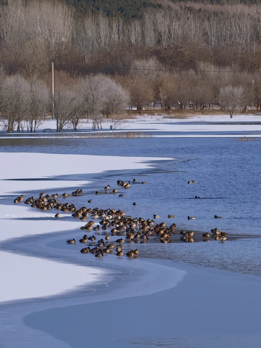 北京下了初雪 赶紧去唐指山水库拍雪景 平时这里就很多野鸭鸳鸯水鸟栖息 这次一看不仅水鸟很多,湖面还成了鸳鸯色 简直太美了! 天气暖和的时候很多摄影爱好者来拍鸟呢 [打卡R]导航:顺义唐指山风景区 🚗停车:水库门口就是免费停车场