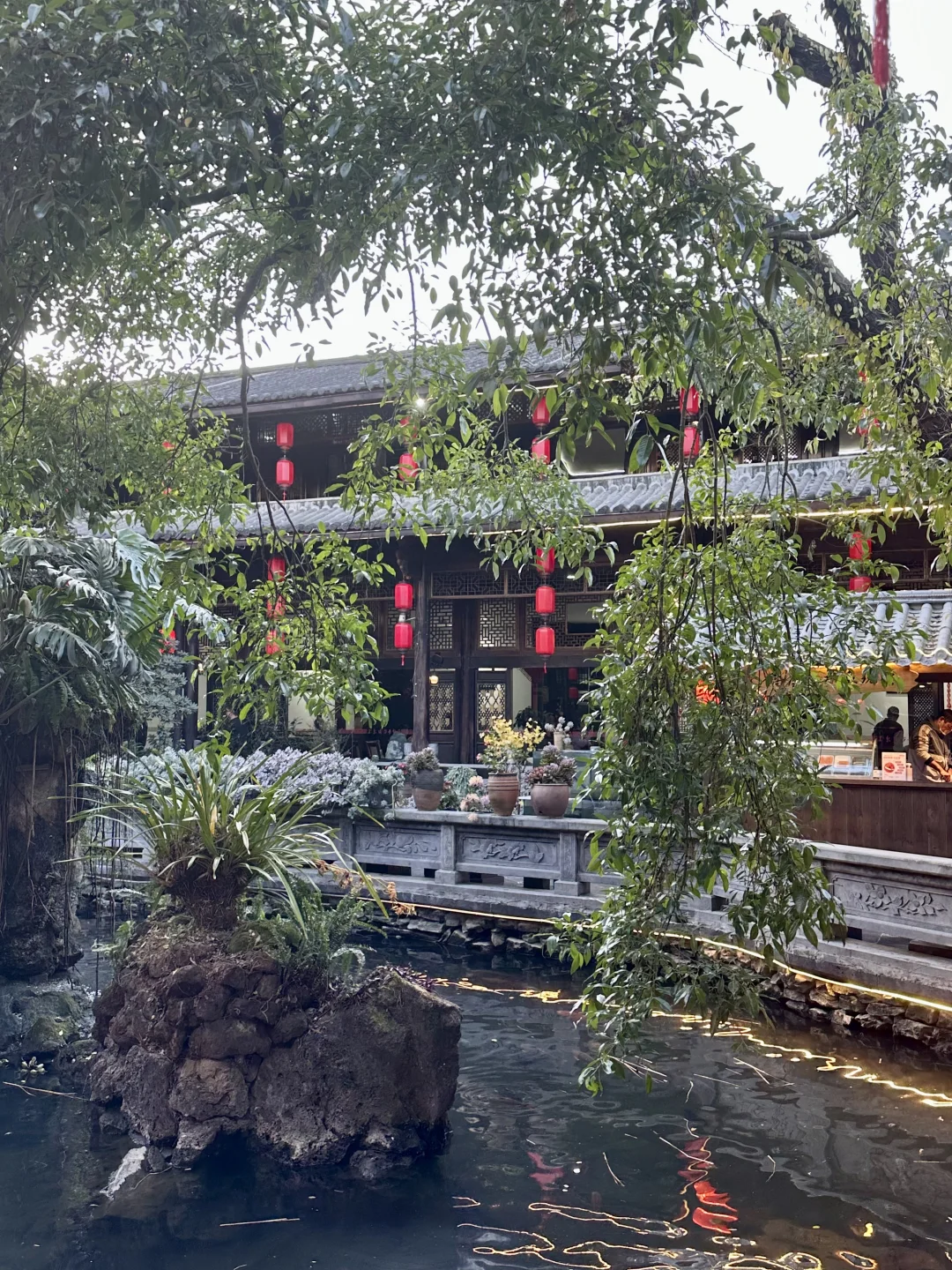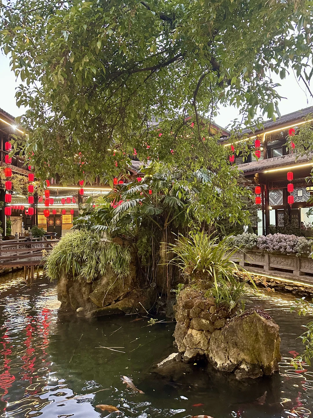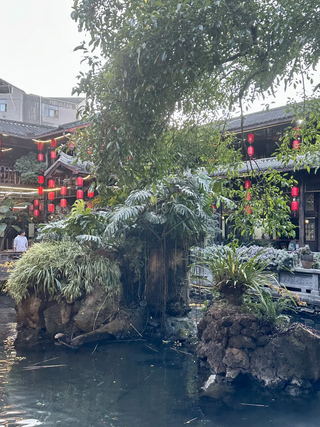 来腾冲旅游的宝子听我一句劝!这锅野生菌火锅真的能封神!😭 藏在玉泉园古色古香的庭院里,进门就被山石流水、红灯笼戳中,中式氛围感直接拉满,拍照巨出片~