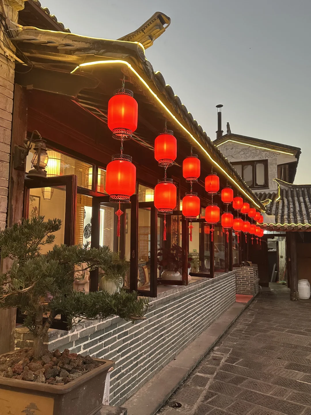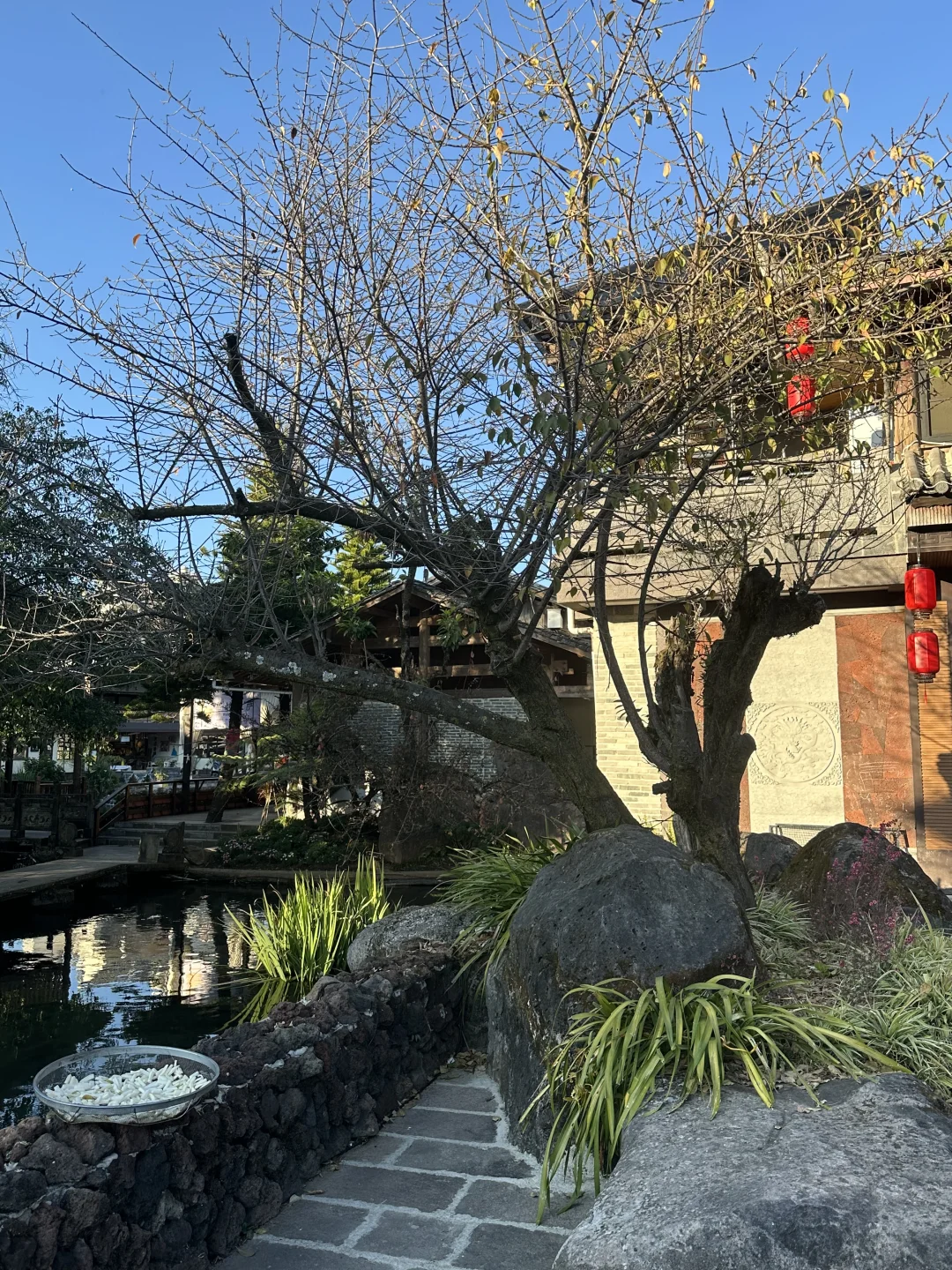 古宅庭院错落有致,既有开放式卡座能看蓝天青山,也有私密包间适合聚餐~ 木质桌椅、流水潺潺,吃饭像在逛园林,穿新中式或浅色系衣服拍照,随手都是古风大片📸