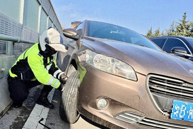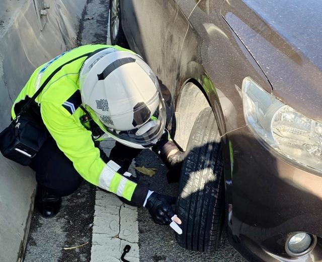 经询问,该车因轮胎漏气导致无法行驶,驾驶员尝试自行处理未果,看到交警马上求助。辅警魏泰荣迅速设置警示标志,引导后方车辆避让,然后从警车中取出工具,俯身协助更换备胎。约一刻钟后,轮胎更换完毕。驾驶员连连道谢:“幸亏遇到辅警同志,不然我真不知道怎么办!”