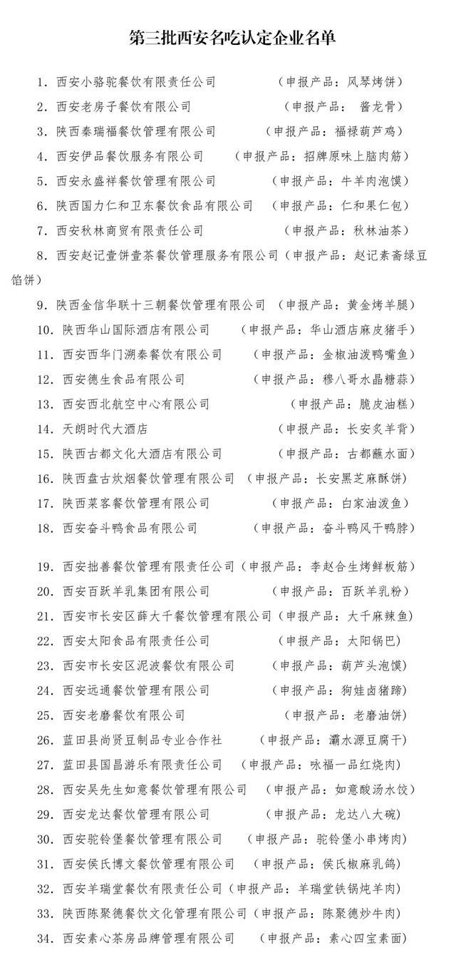根据西安市商务局《关于开展第三批“西安老字号”和“西安名吃”推荐认定工作的通知》(市商发〔2025〕39号),按照《西安老字号认定管理办法》和《西安名吃认定管理办法》的标准条件及要求,由西安市商务局组织专家评委,对经企业自愿申报,各区、县商务主管部门初审推荐的第三批“西安老字号”和“西安名吃”申报企业进行资料审核及现场核查,西安咸宁百货有限公司等40家企业符合认定标准,认定为第三批“西安老字号”。西安小骆驼餐饮有限责任公司(申报产品:风琴烤饼)等34家企业及产品符合认定标准,认定为第三批“西安名吃”。现予以公告。