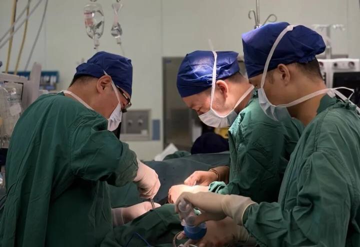 在体外循环师全程护航下,心脏停止跳动后,张总刚主任娴熟操作,重塑撕裂血管、消灭假腔。术中麻醉医生紧盯生命体征,用冰袋为患者头部降至25℃,最大限度降低脑损伤风险。历经数小时奋战,心脏成功复跳,手术顺利完成。