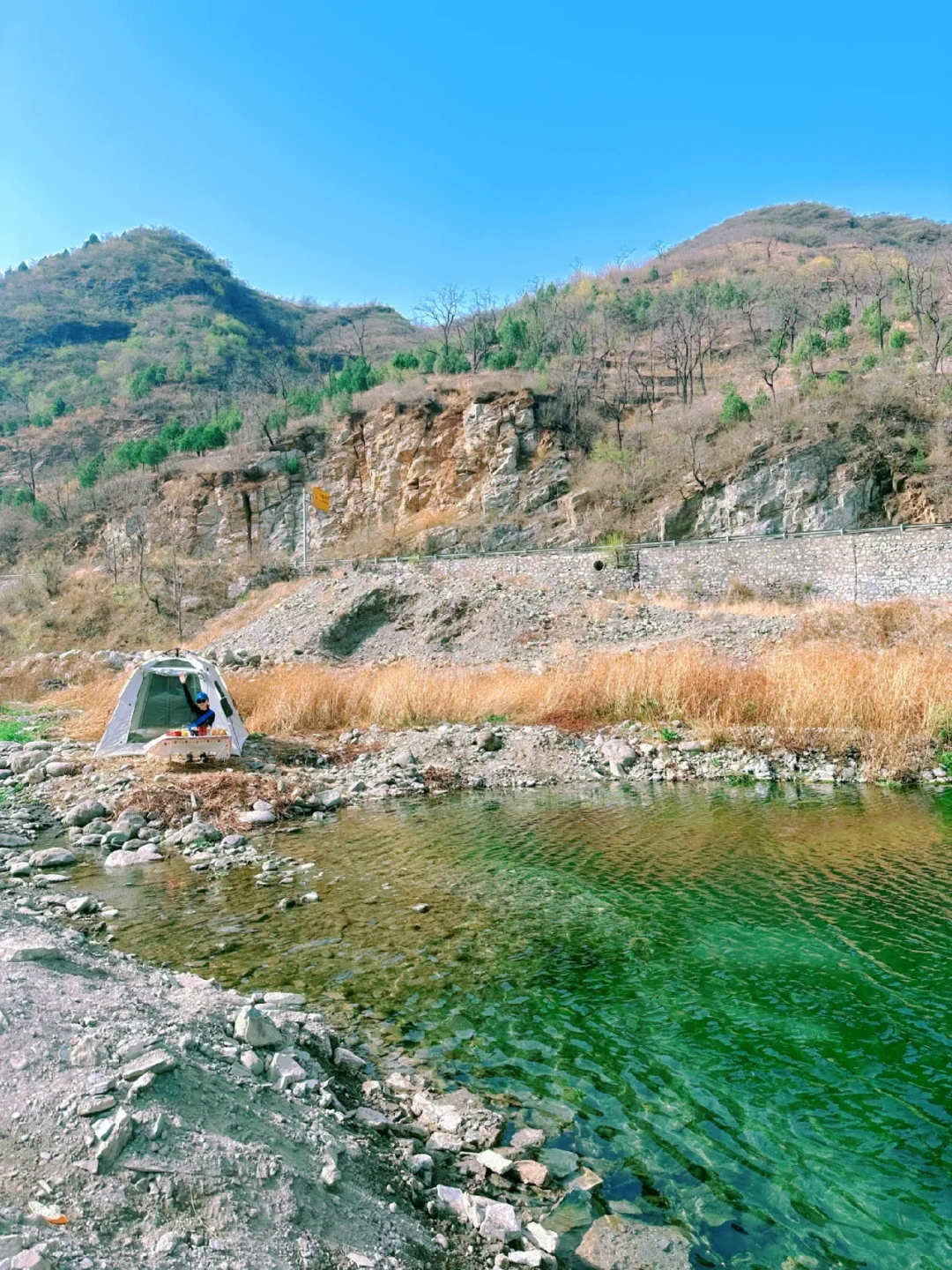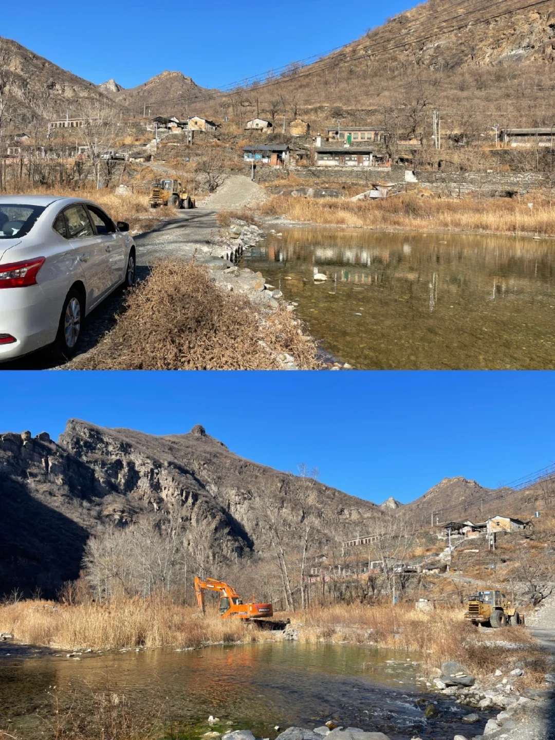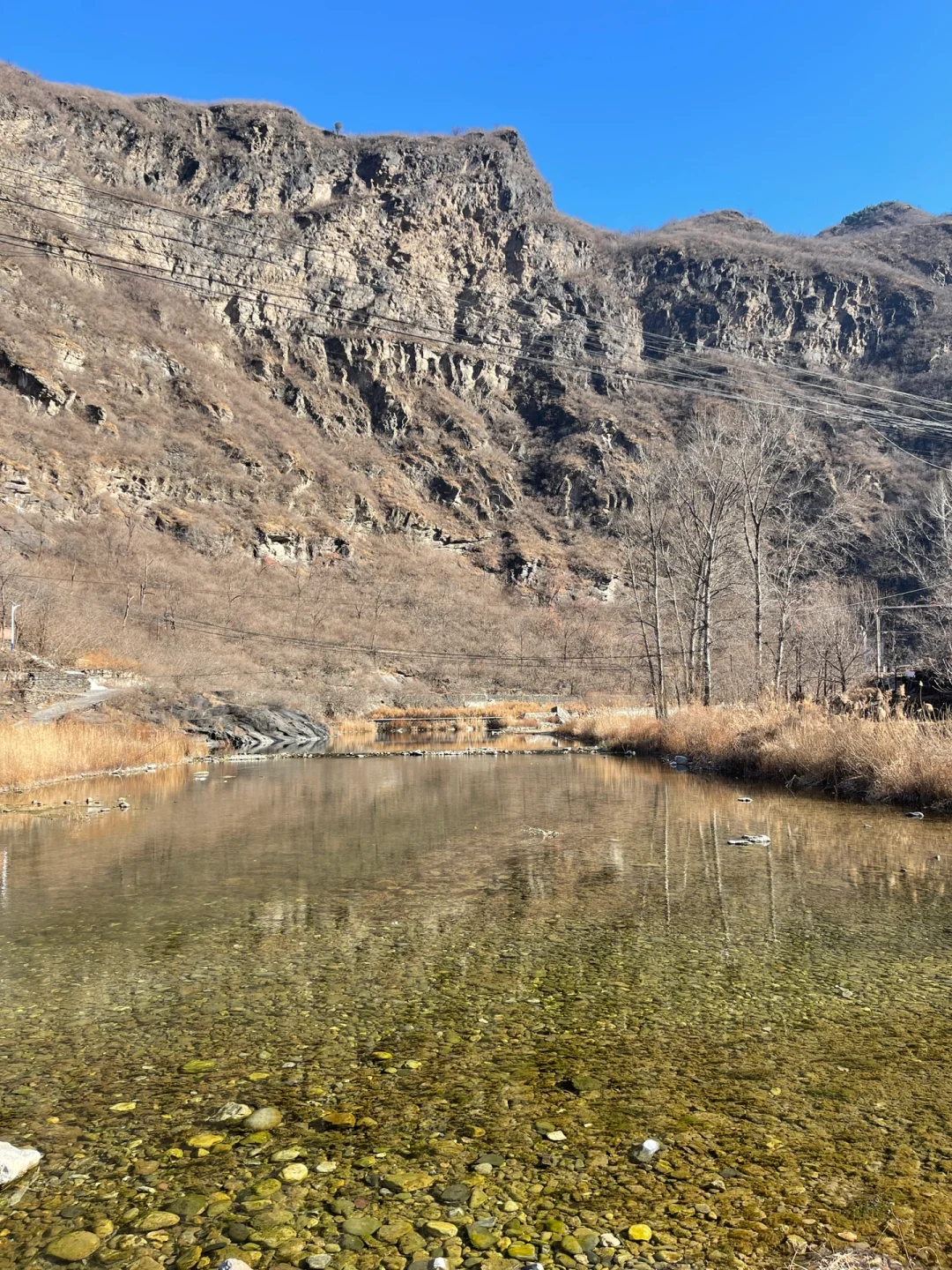 📍房山大港公交站,注意左手边岔路,下坡一直往前就可以开到河边了
