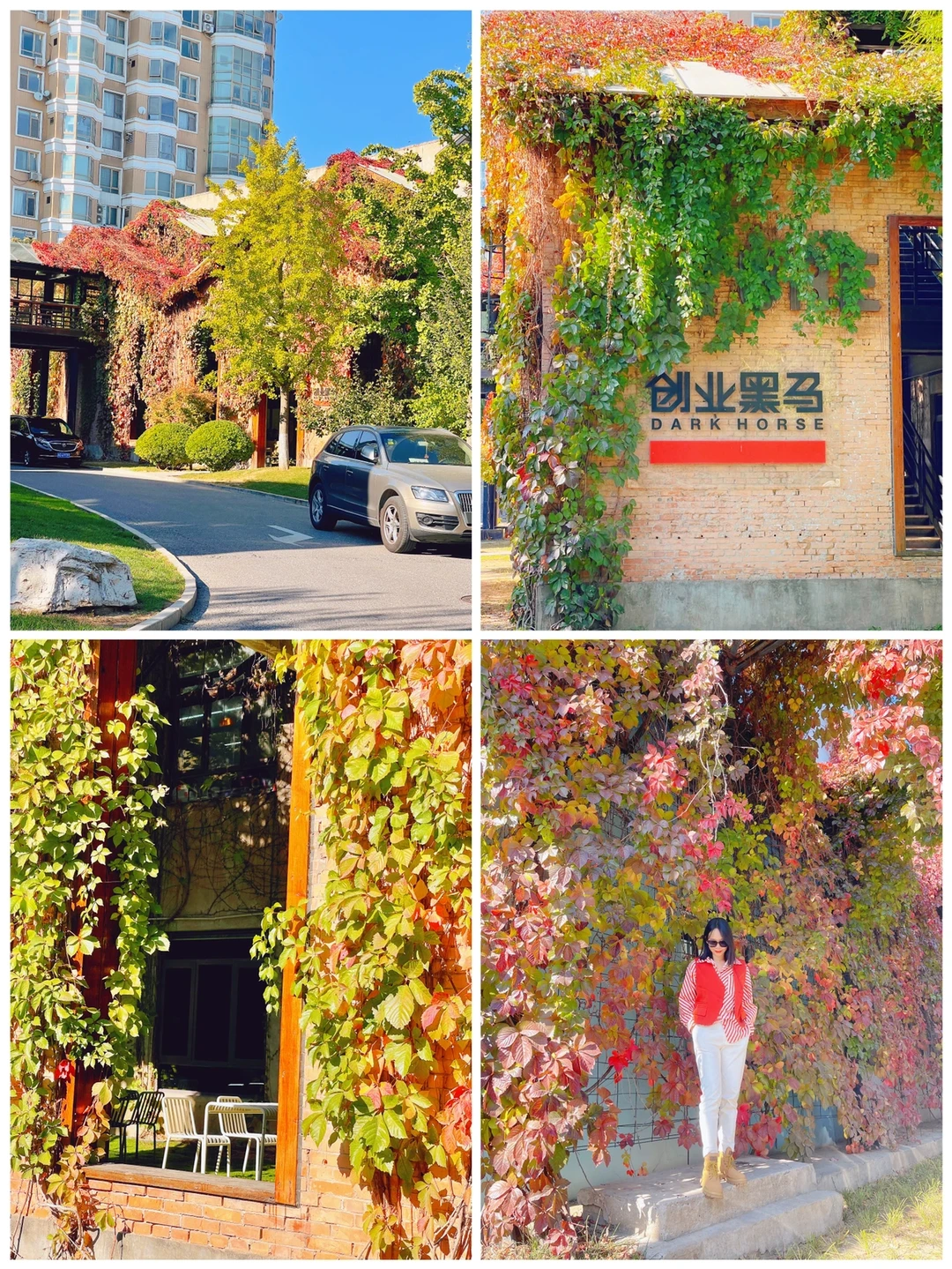 7、园区内好几处爬山虎墙,蕞喜欢“创业黑马”这处的爬山虎,非常壮观,过几天全红了应该hin好看