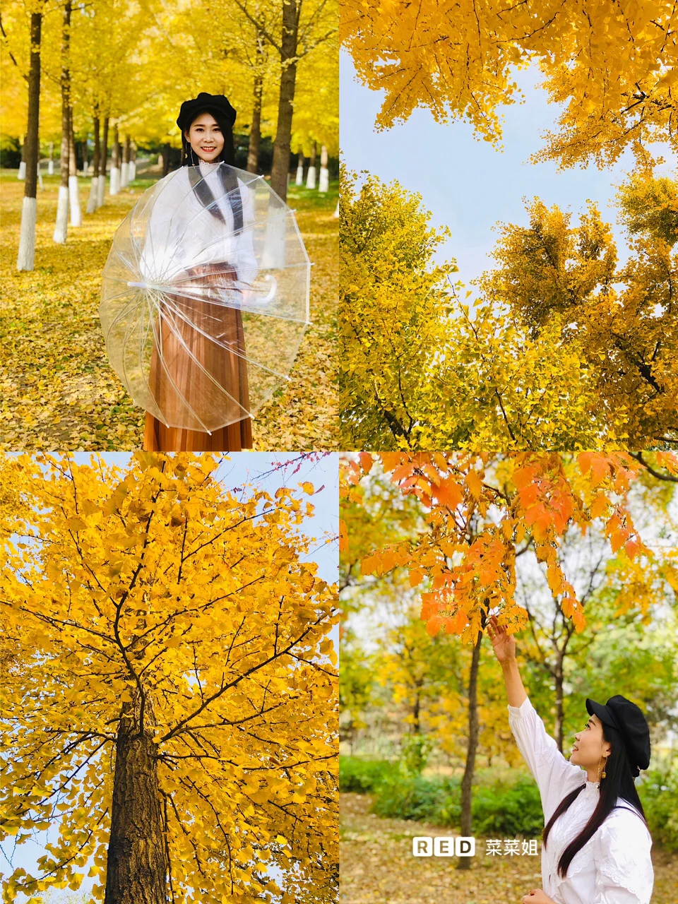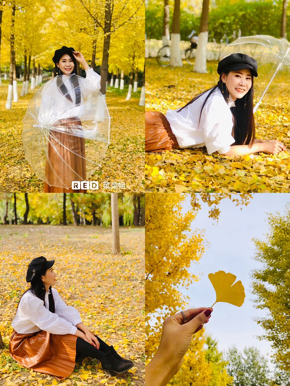 🍂拍摄必备:帽子🧢墨镜🕶️伞⛱️泡泡机,我忘记带泡泡机了😭金灿灿的银杏叶与泡泡的结合,营造出梦幻的感觉,一定非常美腻💛