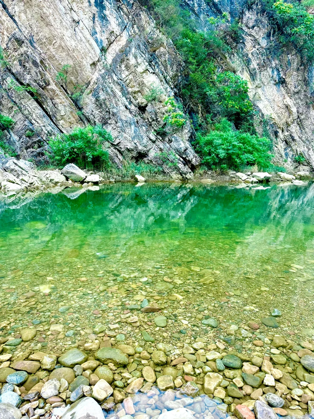 5、近日爆🔥的瀑布没有水,虽然没看到瀑布,不过这里还是值得来的,晴天溪水绿的像一块无暇的翡翠