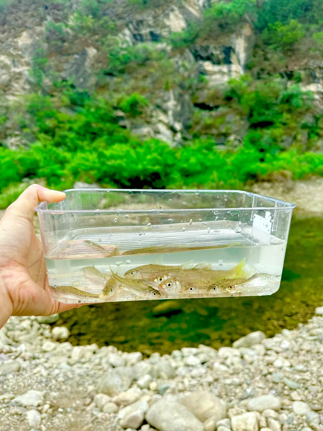 2、溪水很清,清的可以看到湖底的砂石,很多浅滩,鱼超多,马口~宽鳍𫚭~跟朋友体验了一次徒手抓鱼的快乐