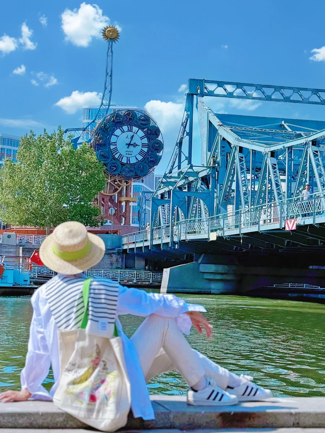 📷P2:天津解放桥:世纪钟对面河边下楼梯位置可以拍摄解放桥和世纪钟同框