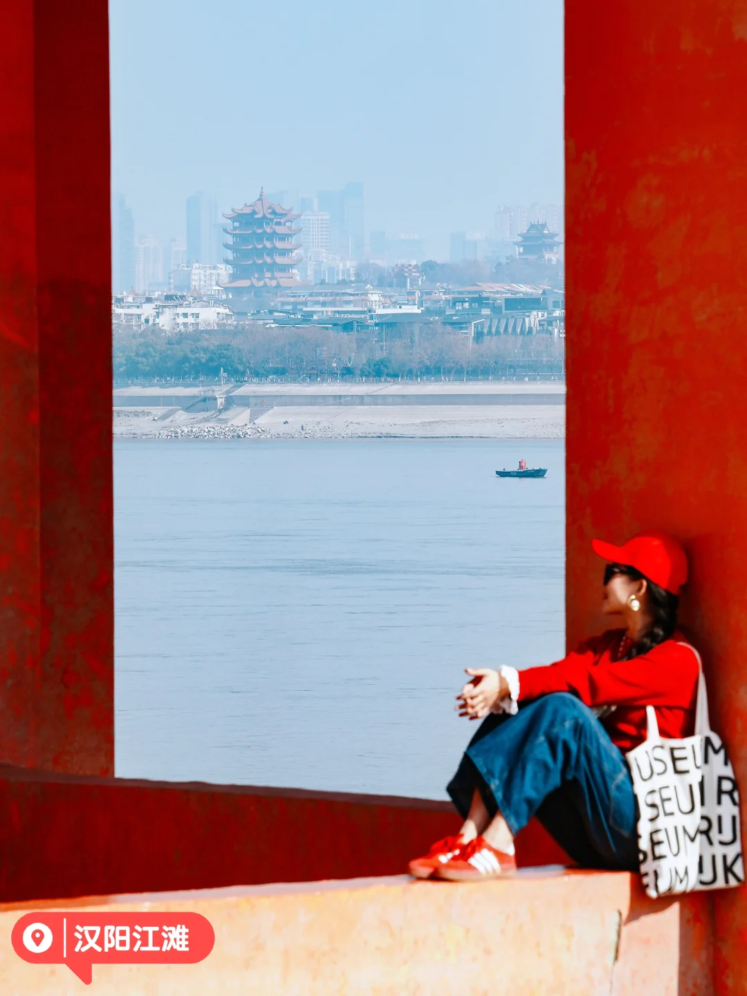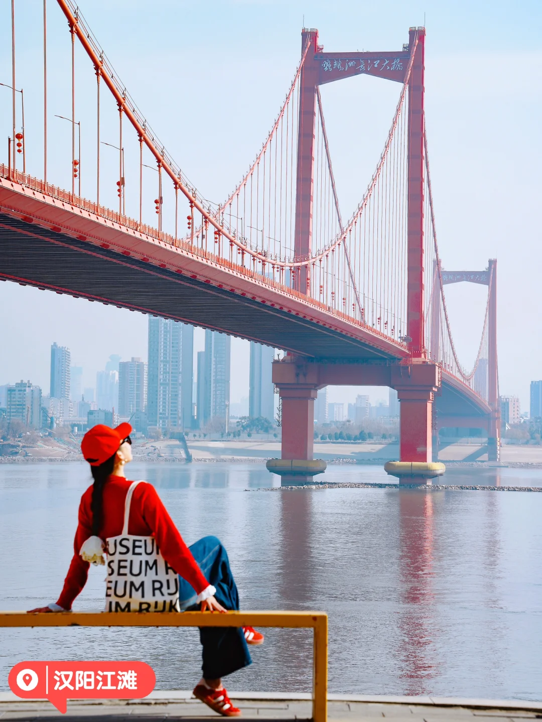 图3、4、5:鹦鹉洲长江大桥:通体红色桥梁,站在桥上可与黄鹤楼同框,导航汉阳江滩停车场,拍完这里还可以去对面拦江路拍百米长的蔷薇花瀑