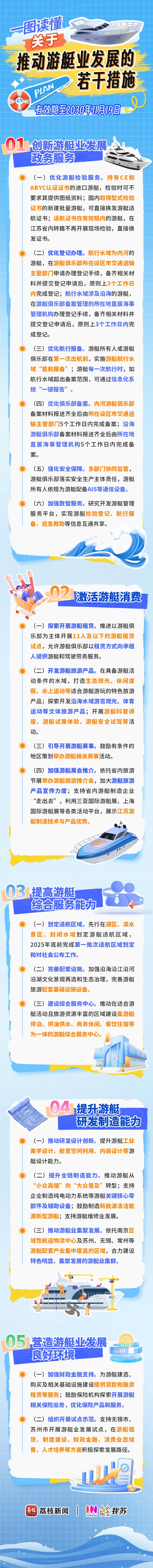 江苏人,请准备“乘风破浪”!近日,省政府办公厅正式印发的《关于推动游艇业发展的若干措施》围绕政务服务、消费激活、服务保障、研发制造和发展环境等5个维度,推出了21项具体举措,为因地制宜探索具有江苏特色的游艇业高质量发展新路径,提供了重要政策依据和先行先试发展空间。