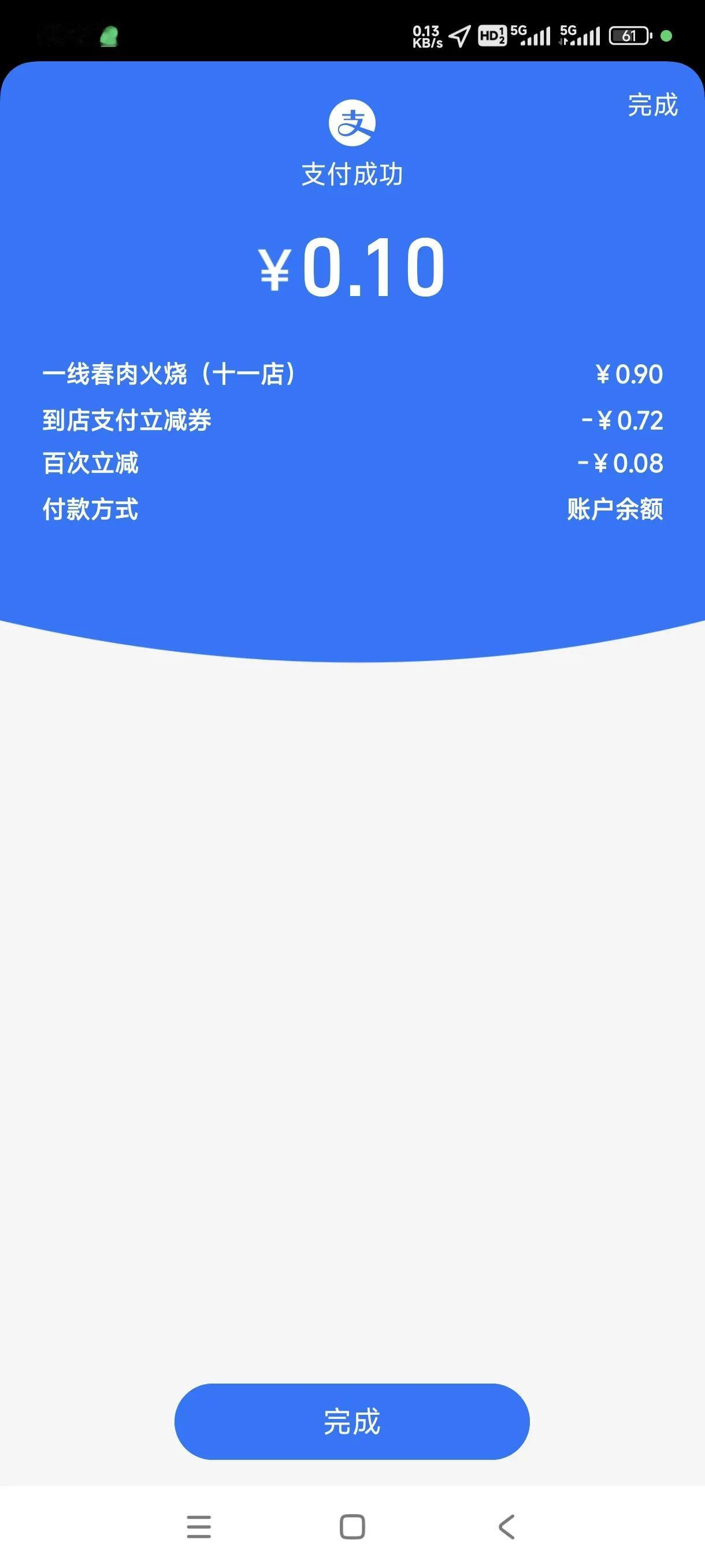 支付宝的红包还可以 一天0.72一共三天的 今天晚上花了一毛钱买了一个油酥烧饼 不错不错