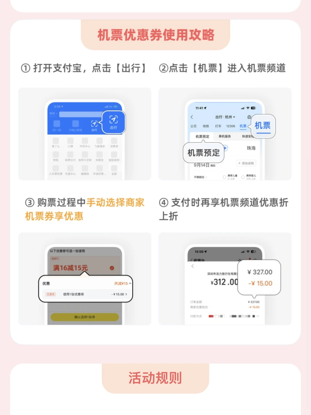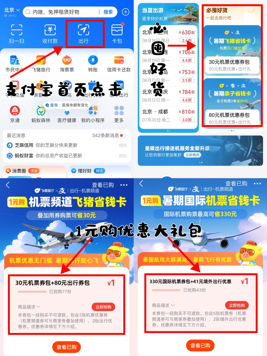 支付宝机票频道现在能一键比价,快速选定低价机票,减少各大航司比价的繁琐。平台补贴5-25元,可叠加商户10-30元的优惠使用,近期有旅行计划的小伙伴这波省钱优惠一定别错过❗上支付宝搜索【1元省钱卡】,可购买1元暑期券包,国内机票单笔可省30元,亲子国内机票单笔优惠40元,2笔省80元,国际机票最高省330元。还包含酒店、租车、接送机优惠券超划算