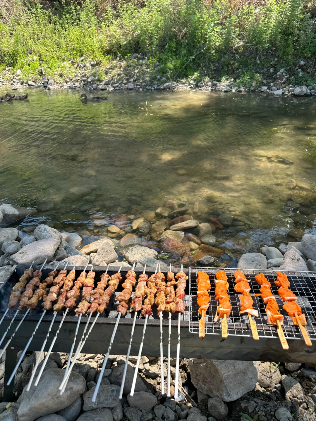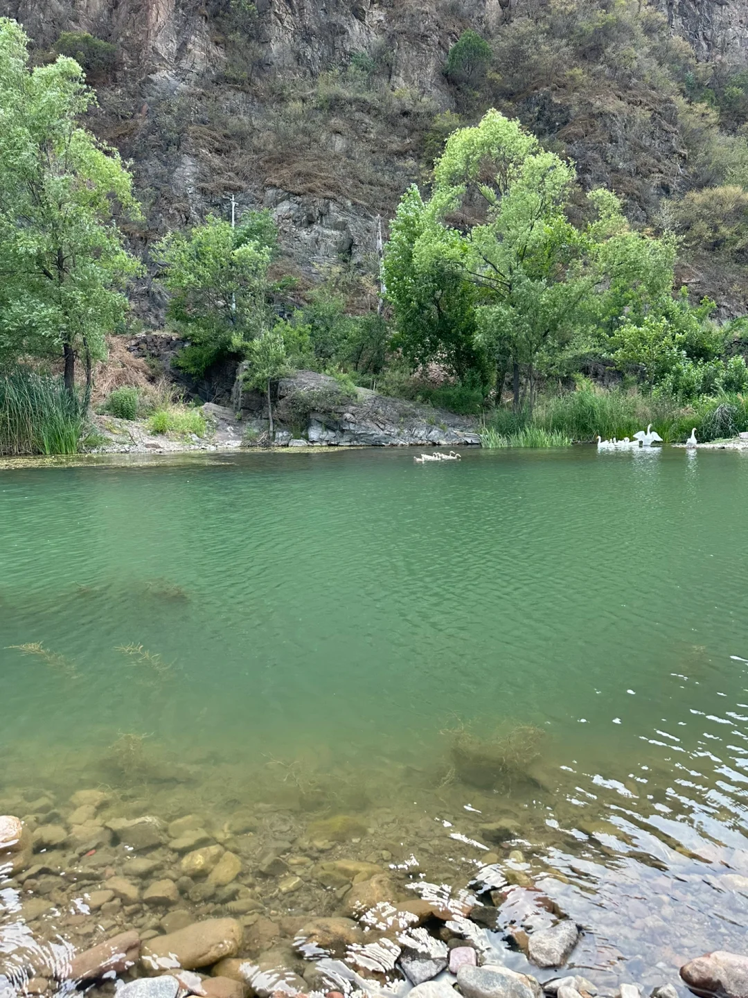 溪水清澈,大面积浅滩,很适合小朋友玩水,鱼虾超多,徒手都能抓到,多翻翻石头,没准儿还能抓到小螃蟹🦀️呢