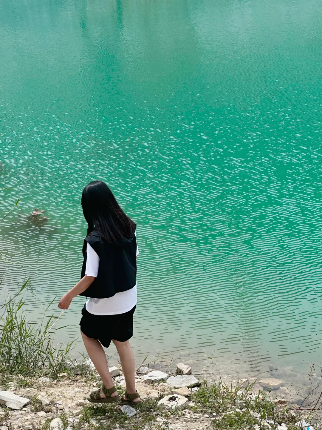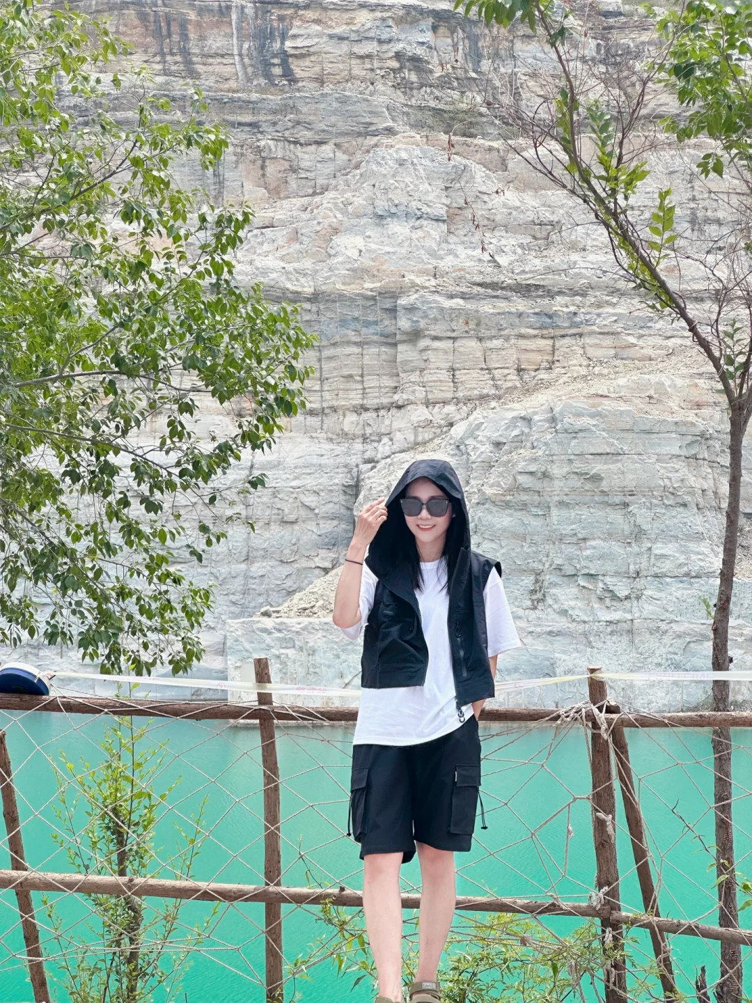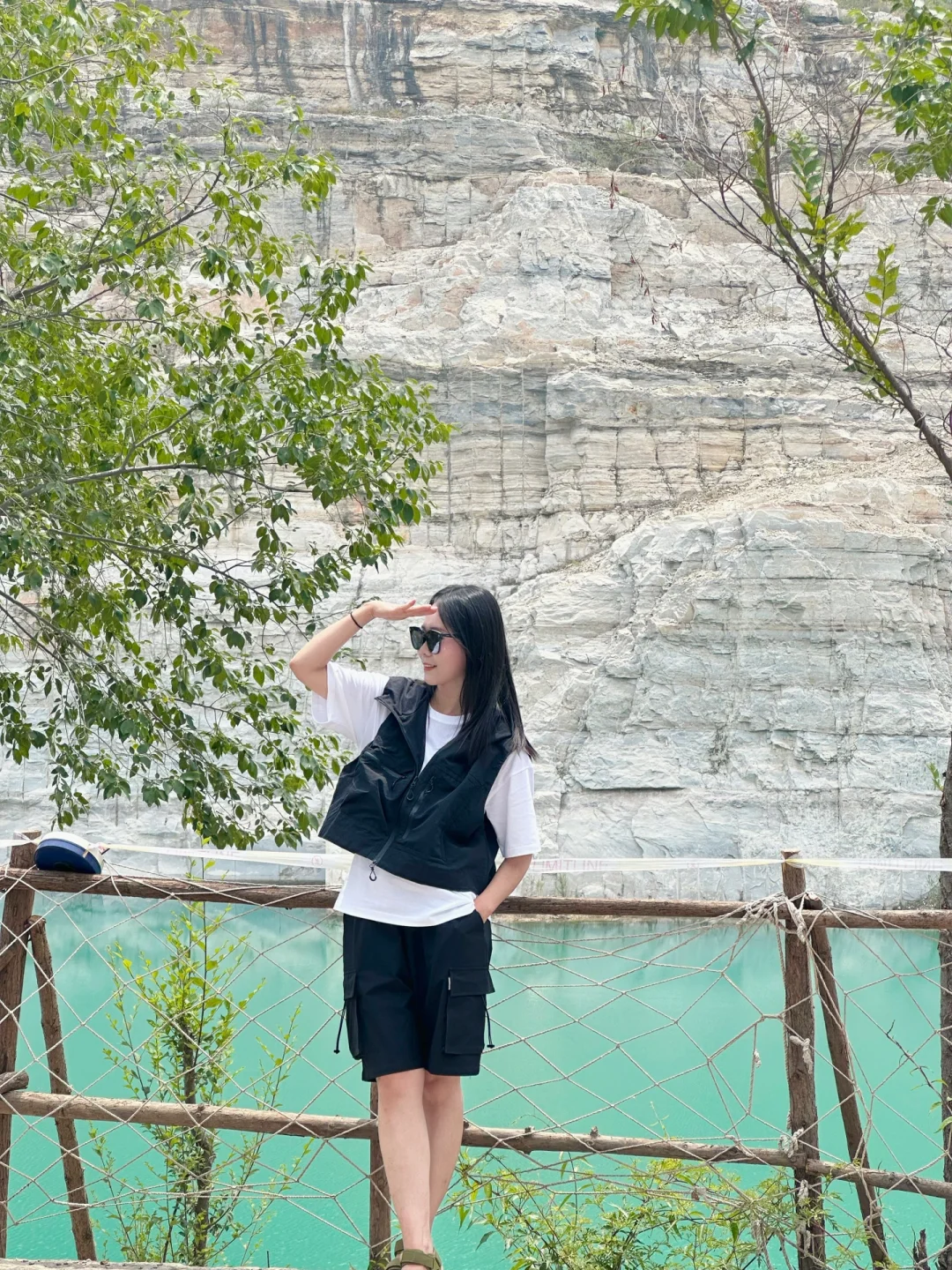 因水而美的房山小九寨 我愿称之为北京蕞美的景色 且不接受反驳‼️ 这里盛产汉白玉 曾是人工矿坑 因为水中含有丰富的矿物质 所以颜色呈蓝绿色 非常好看 而且真的好清澈 晴天拍摄自带滤镜 这里有收费的露营区 也有免费的游玩区 如果离得不远还是非常值得来的 毕竟在北京这么治愈的美景真的很少见 📍地址:房山区大石窝镇高庄村 🧭导航:“蓝色之眼露营区”跟着导航走即可 OOTD: T恤➕马甲➕短裤:RCDB 凉鞋:SHAKA 雨彤同款在官方运动户外频道