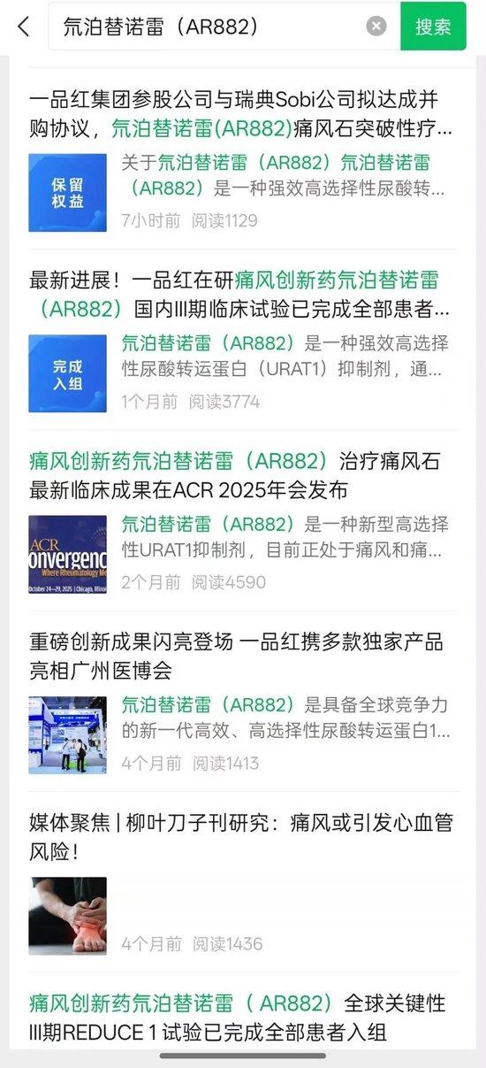 两天后的2025年3月6日一品红再发文称,“最新进展!痛风创新药AR882全球Ⅲ期试验REDUCE2提前完成受试者入组”;