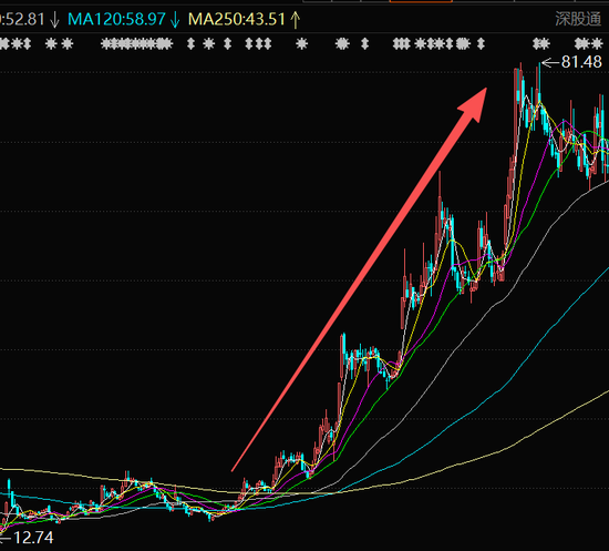 至此一品红的股价短短半年涨了四倍多,但来到80元附近高位后开始陷入震荡,已经难以再进一步。