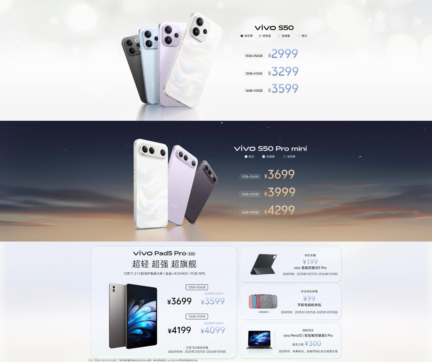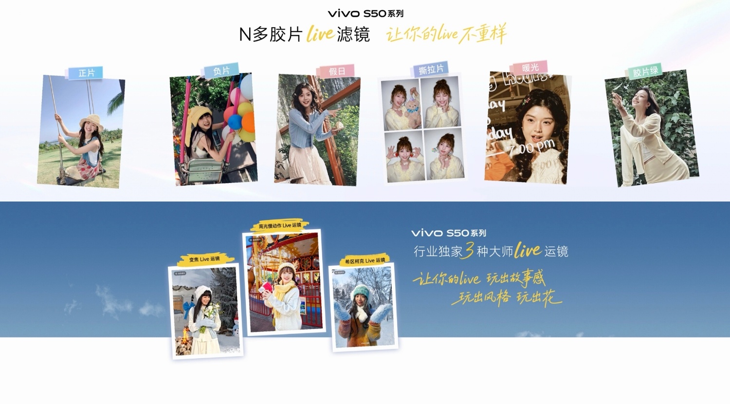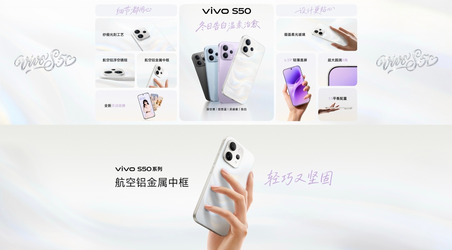 vivo 全新的 S50 系列刚刚发布,S50 和 S50 Pro mini,两款都是长焦Live神器,主打的就是一个随手拍出电影感。这次新配色「告白」绝了,白里透金的缎面质感,又温柔又高级,还不沾指纹。设计上一贯的 vivo 风格,简洁又有细节,那个“浮空岛”镜头模组,看起来就像悬浮在背板上一样,质感拉满。重磅依旧是影像!全系上了索尼 IMX882 大底潜望长焦,最高 10 倍变焦不说,重点打磨的是“3倍黄金焦段”,拍人像背景自然虚化,故事感直接到位。大师级Live运镜,什么高光慢动作、变焦推拉、甚至希区柯克式效果,一键搞定,普通人也能拍出导演级短片。还有各种胶片滤镜、路人消除、AI美颜,后期都帮你省了。性能也是S系列的一大突破,全系高通骁龙8系旗舰芯,Pro mini 更是首搭第五代骁龙8,跑分超330万,游戏多任务随便玩。散热堆得也猛,VC均热板面积超大,性能释放稳得很。续航方面全系给到6500mAh蓝海电池,重度使用一天无压力,呼声很高的40W无线闪充和反向充电也给到了Pro mini版本,主打一个听劝!价格方面,S50 起售价2999元(12+256GB),S50 Pro mini 起售价3699元(12+256GB),性价比非常在线。同场加映的还有 vivo Pad5 Pro 柔光版,3.1K超清柔光屏+天玑9400芯片,学习娱乐两不误。总之,如果你爱拍照、拍视频,又想要性能续航全兼顾,S50 系列这次真的可以闭眼入。小巧党冲 Pro mini,大屏党选 S50,各有各的香!vivo S50vivo S50 Pro mini