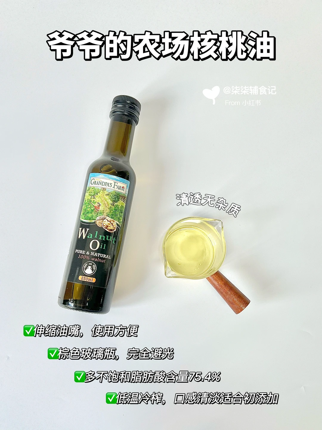 浓汤宝营养丰富,拿来煮粥煮面我都会搭配爷爷的农场核桃油,法国进口低温冷榨工艺,多不饱和脂肪酸含量75.4%,口感清淡,吃起来有淡淡的核桃香~宝宝接受度很高,瓶口是伸缩油嘴,控油很方便,外包装是避光棕色玻璃瓶,性质更稳定!