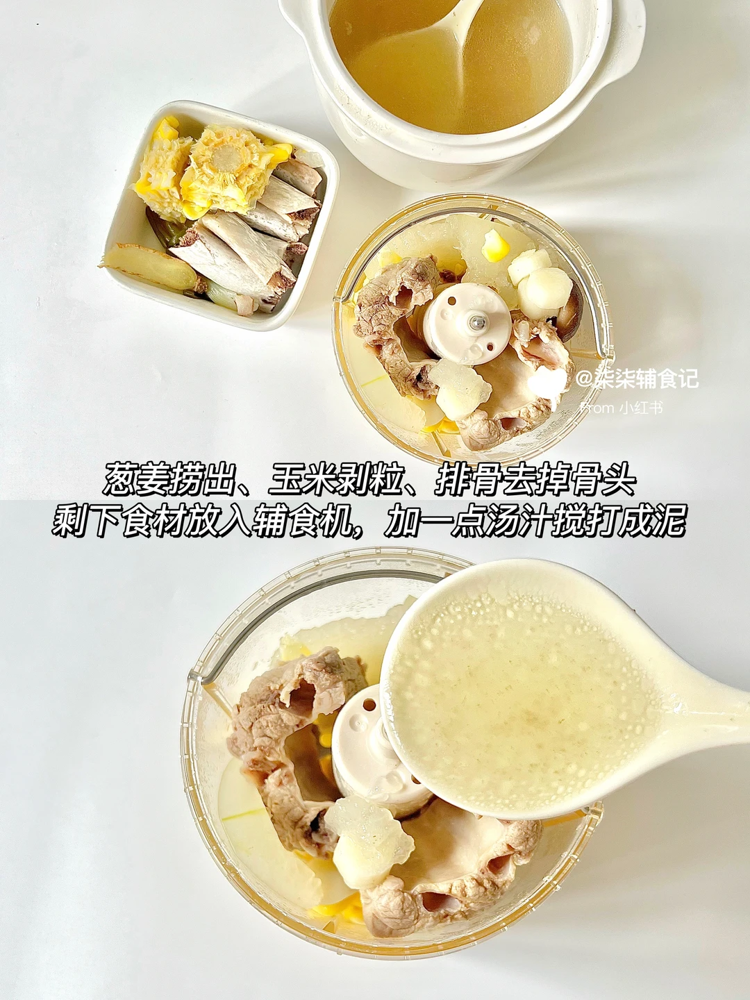 ▫️煮熟把姜捞出,排骨去掉皮和骨头,其余食材放入辅食机,加入适量汤汁,搅打成泥。