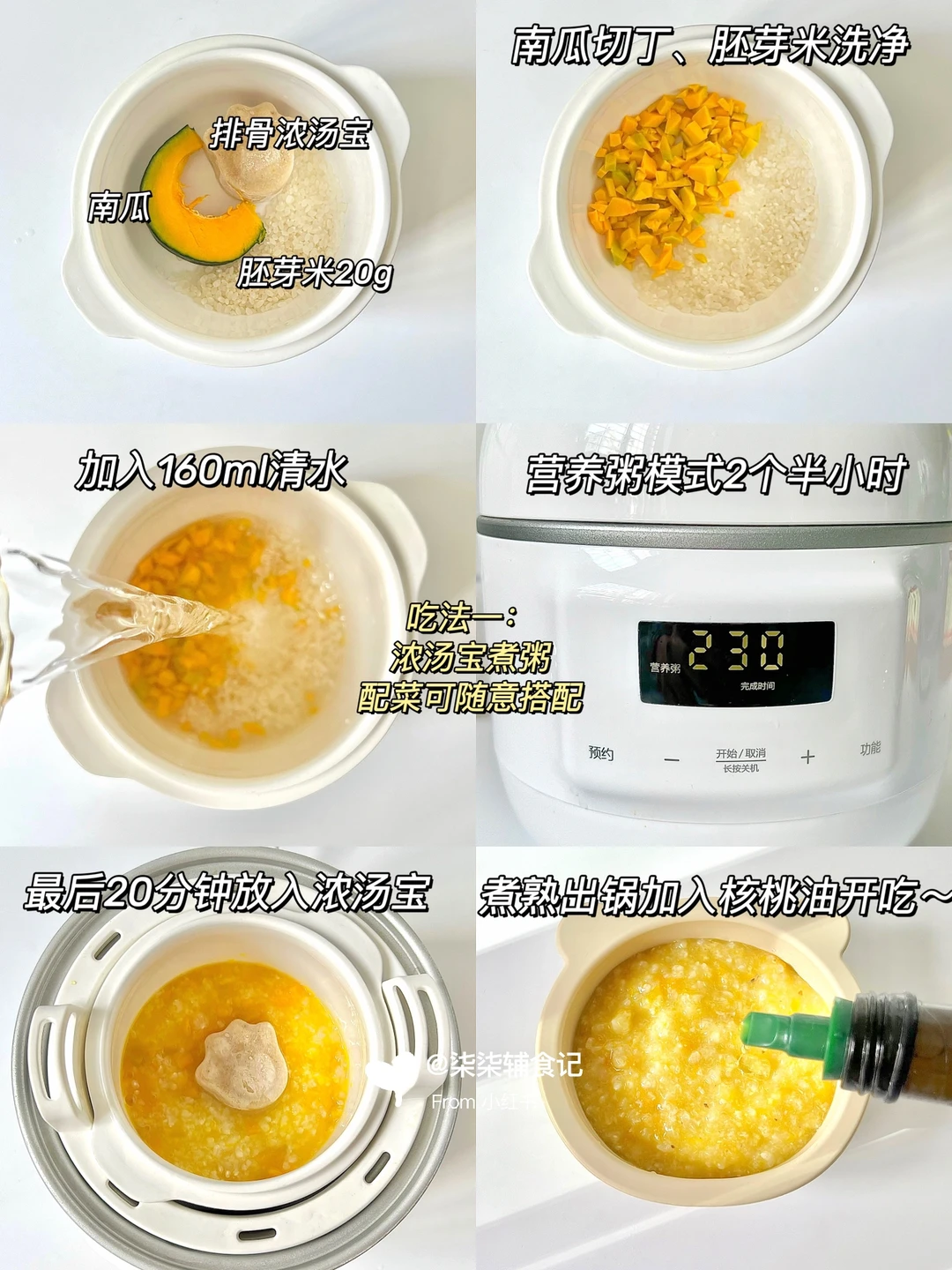 ▫️煮粥还剩半小时完成的时候,把浓汤宝放进去煮半个小时,出锅搅拌均匀即可。