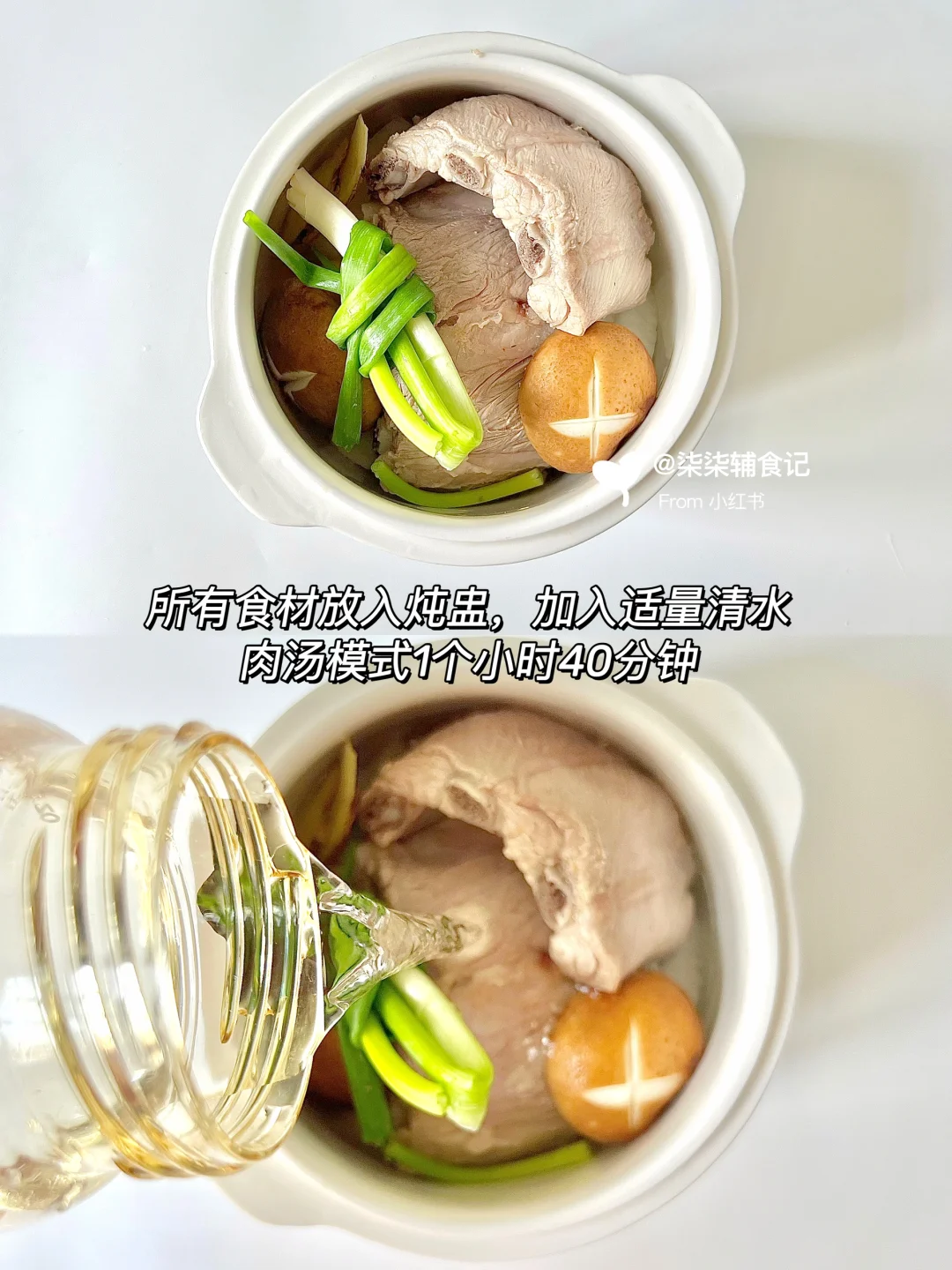 ▫️把所有食材倒入电炖锅,放上葱姜,肉汤模式一个小时四十分钟。