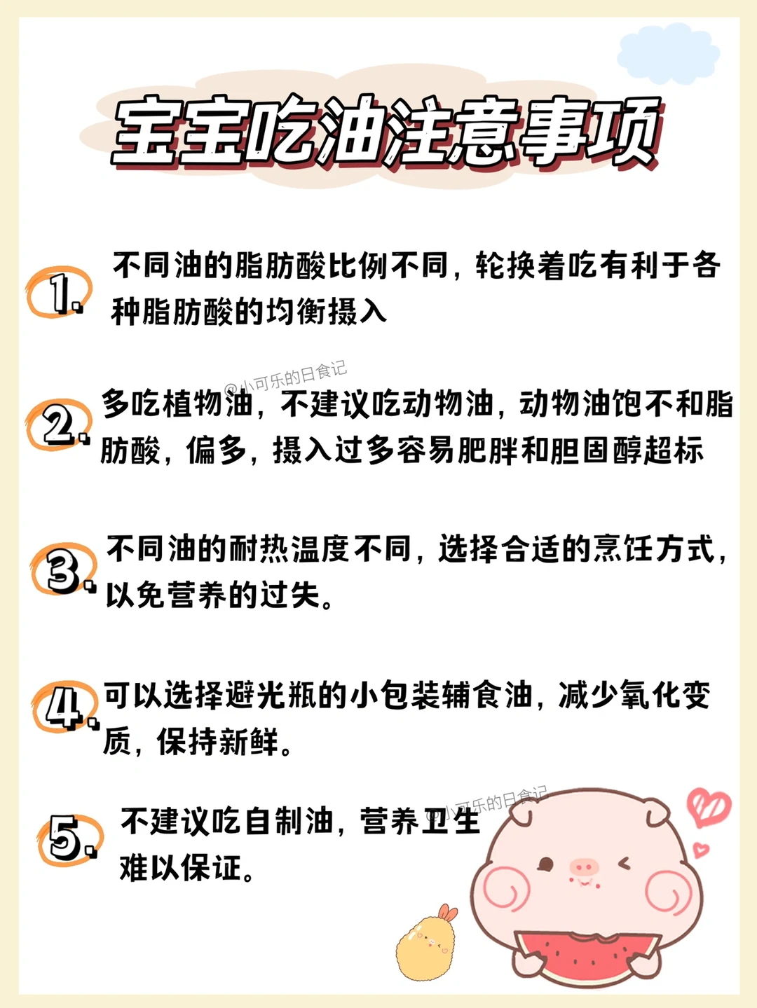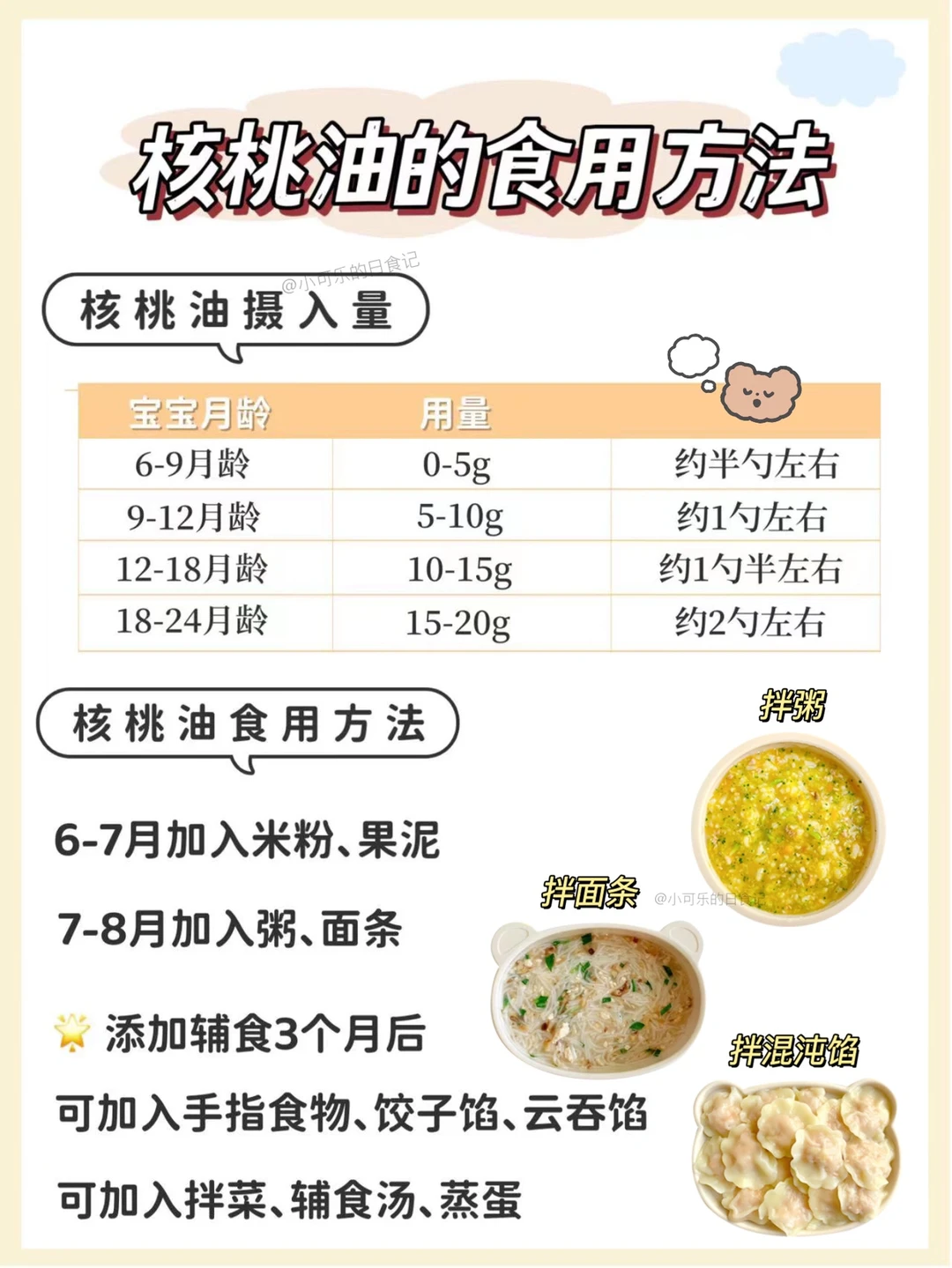 🔸不同月龄辅食油用量
