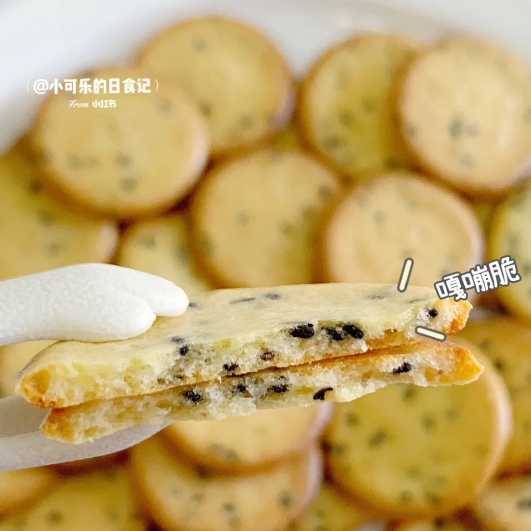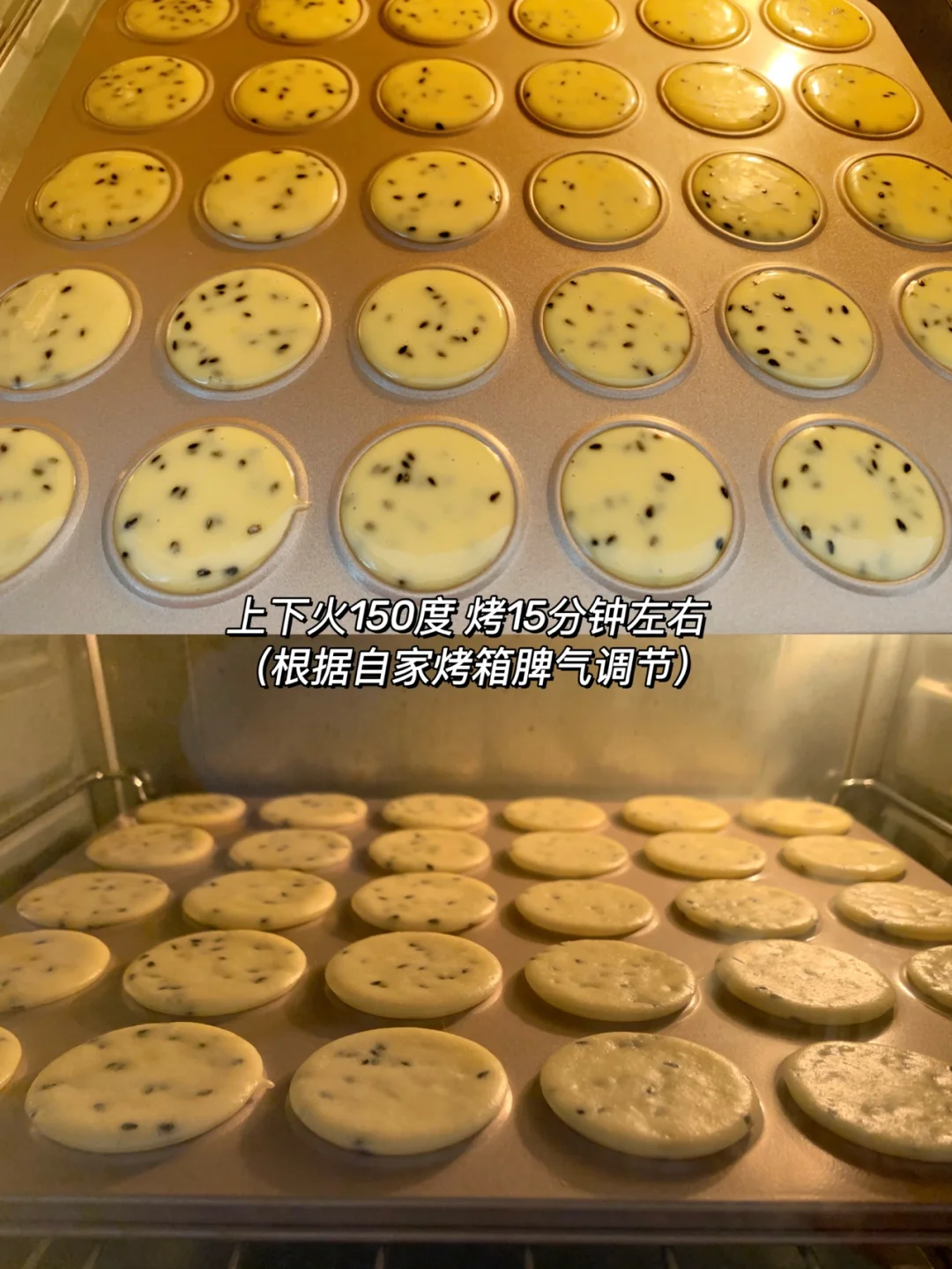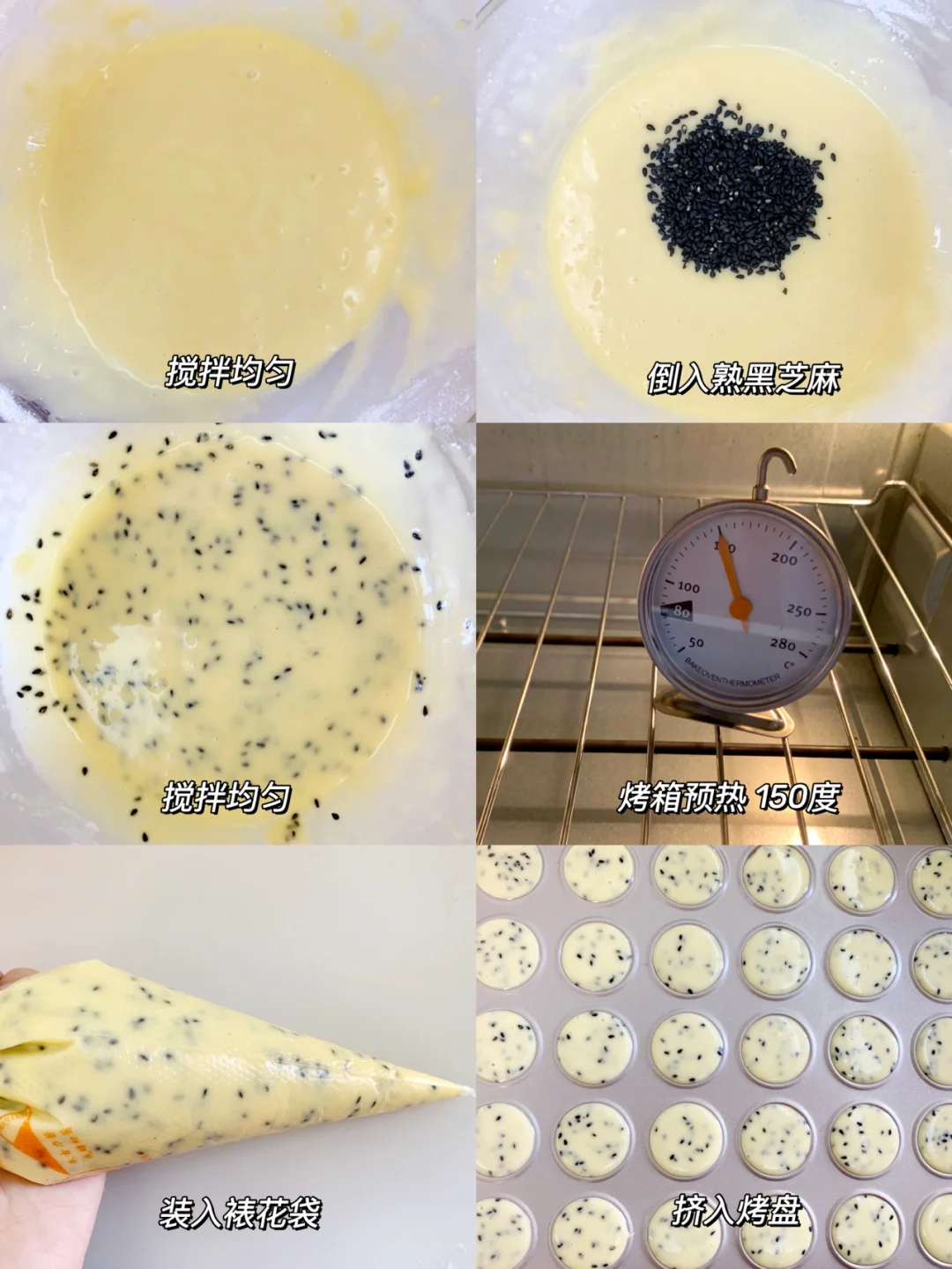 今天给可乐做了这款黑芝麻鸡蛋小饼干,酥酥脆脆,超好吃😋 重点是做法也很简单,免打发,搅一搅,新手妈妈也可以一次成功✅ . 🌟食材 黑芝麻 5克 奶粉 20克 玉米油 40毫升 低筋面粉 60克 鸡蛋 2个 糖 15克(可不加) . 🌟做法: 1⃣️鸡蛋打入无油无水的碗里,倒入糖搅拌均匀,再放入玉米油搅拌均匀 2⃣️在筛入低筋面粉和奶粉,搅拌至无颗粒即可,装入裱花袋 3⃣️烤箱预热150度,把面糊挤入烤盘中, 放入烤箱烤15分钟左右(根据自家烤箱脾气调节) 模具:魔幻厨房马卡龙模具