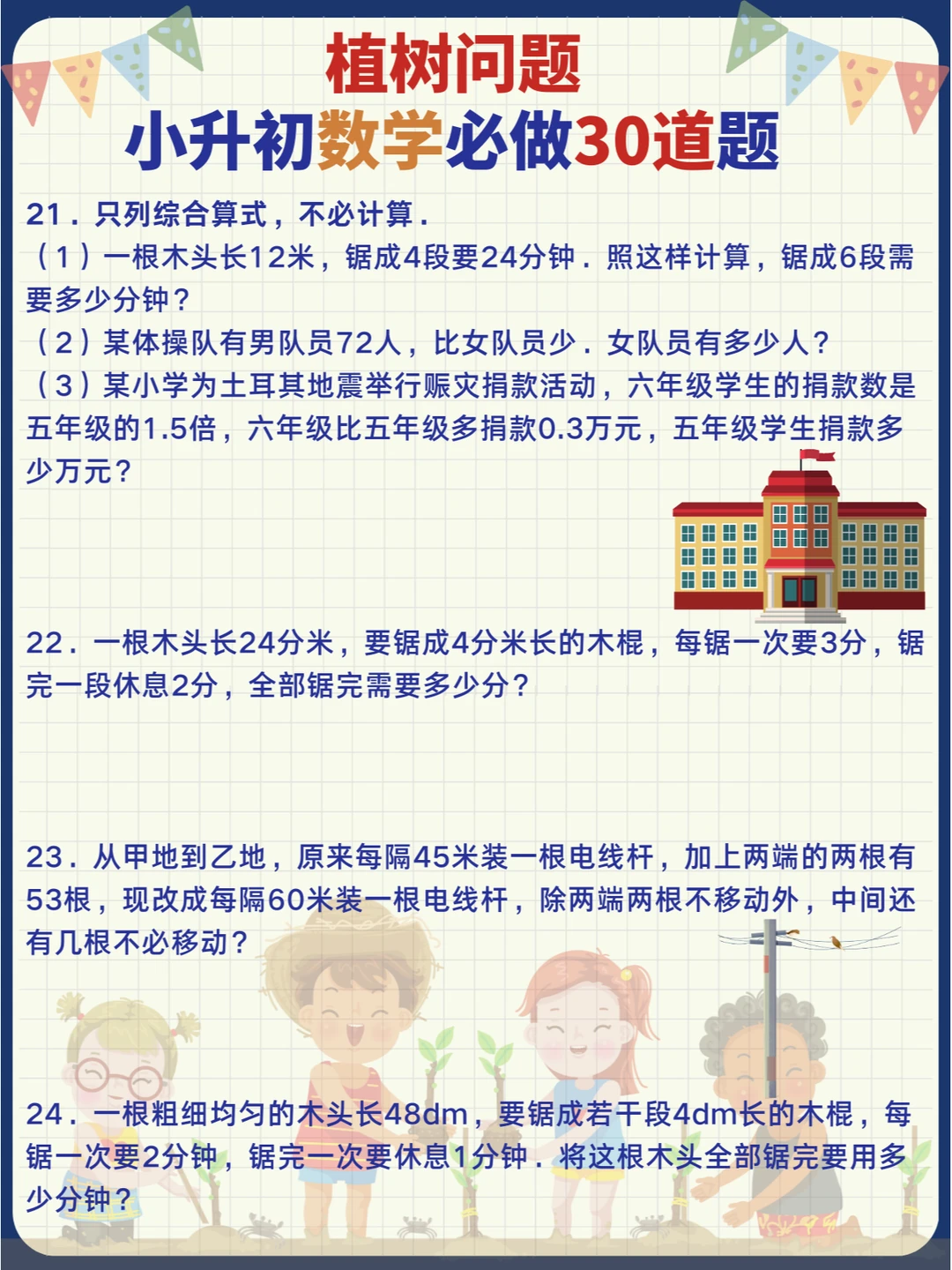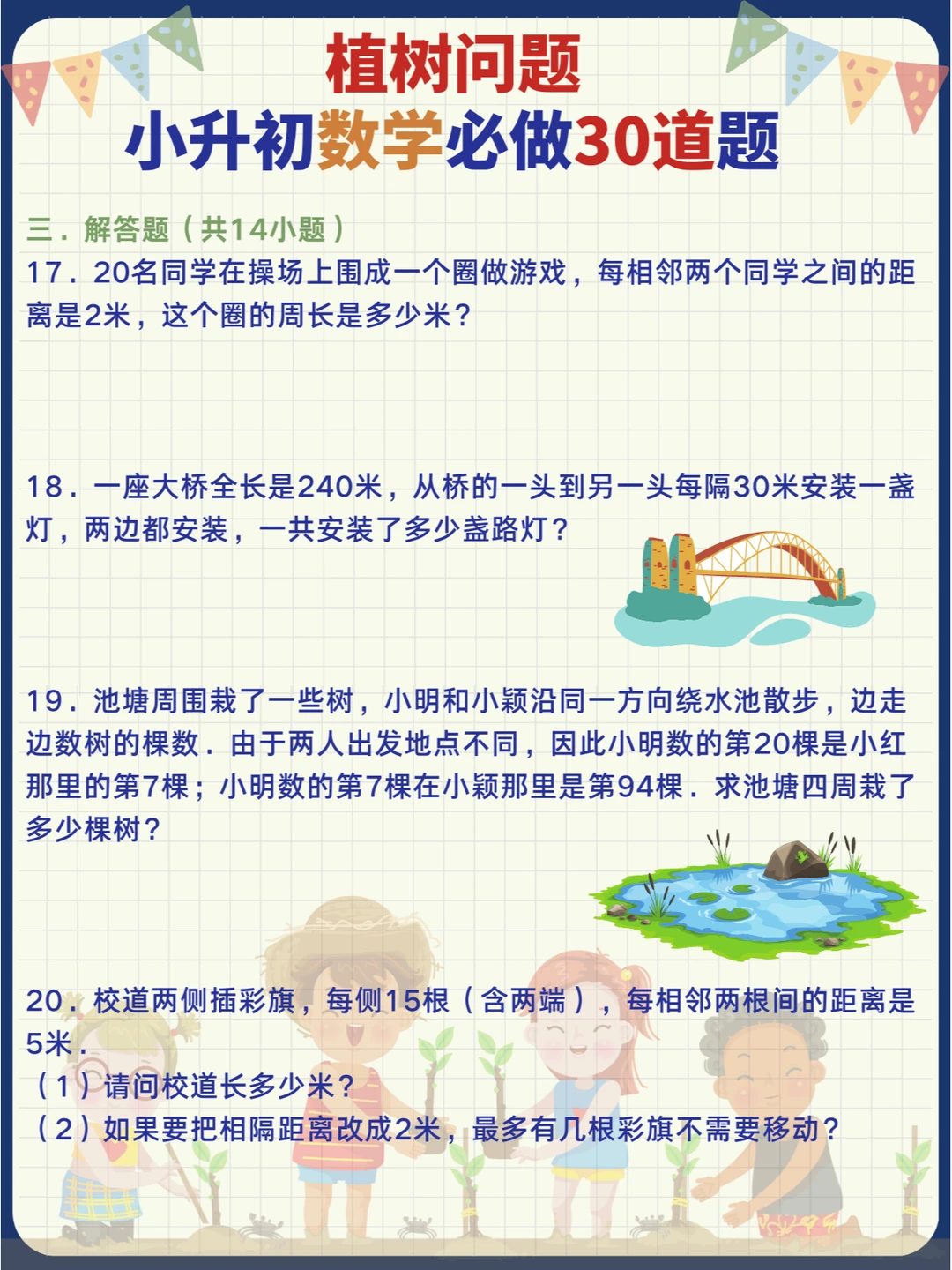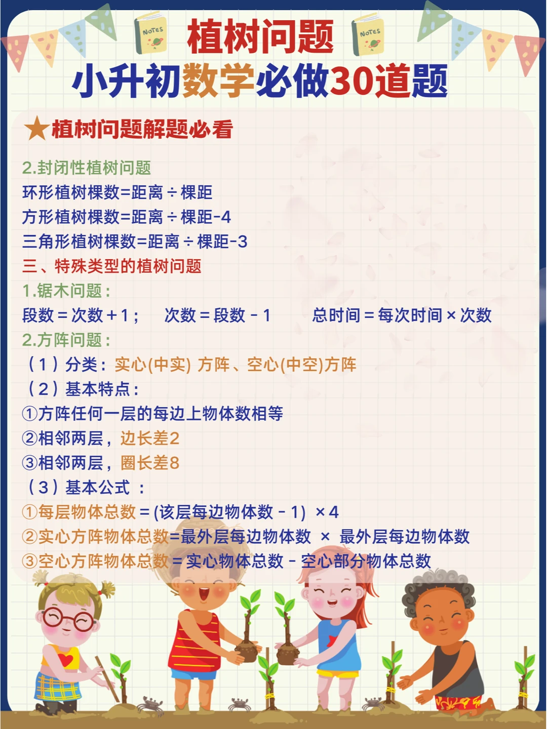小学数学常考易错奥数题-植树问题🌳,小升初专项提升训练30道题📝 记熟数学公式再做题,事半功倍[哇R] 扩展同类问题来思考,举一反三[派对R]