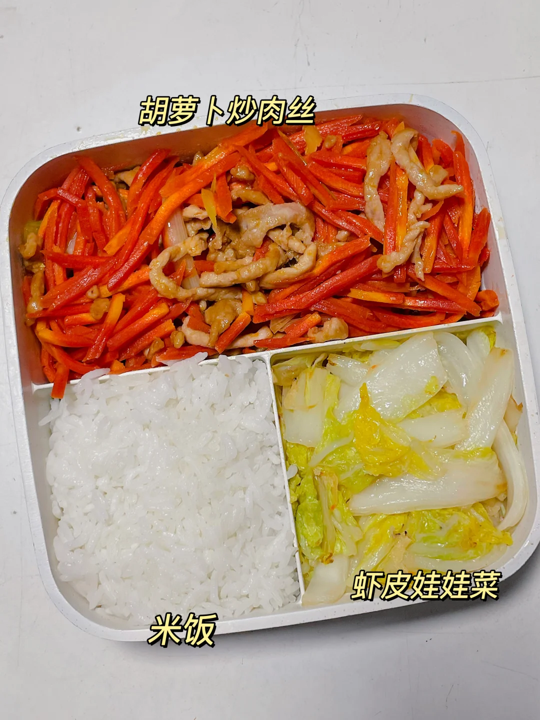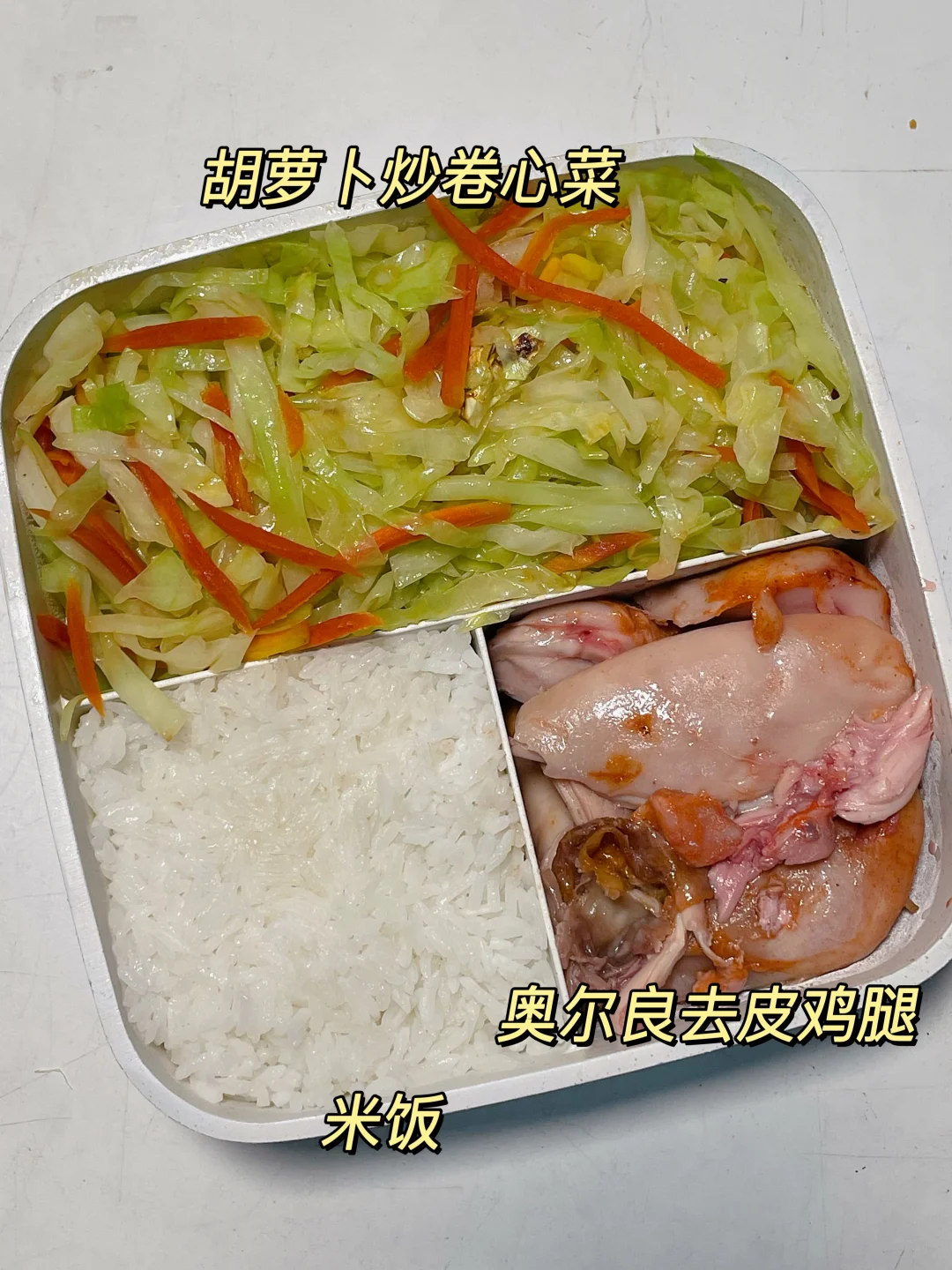 📍米饭+青岛火腿+炒空心菜 📍米饭+炒黄豆芽+平菇炒鸡蛋 📍米饭+胡萝卜炒肉丝+虾皮卷心菜 📍米饭+胡萝卜卷心菜+奥尔良鸡腿 📍米饭+黑胡椒罗非鱼+水煮小白菜