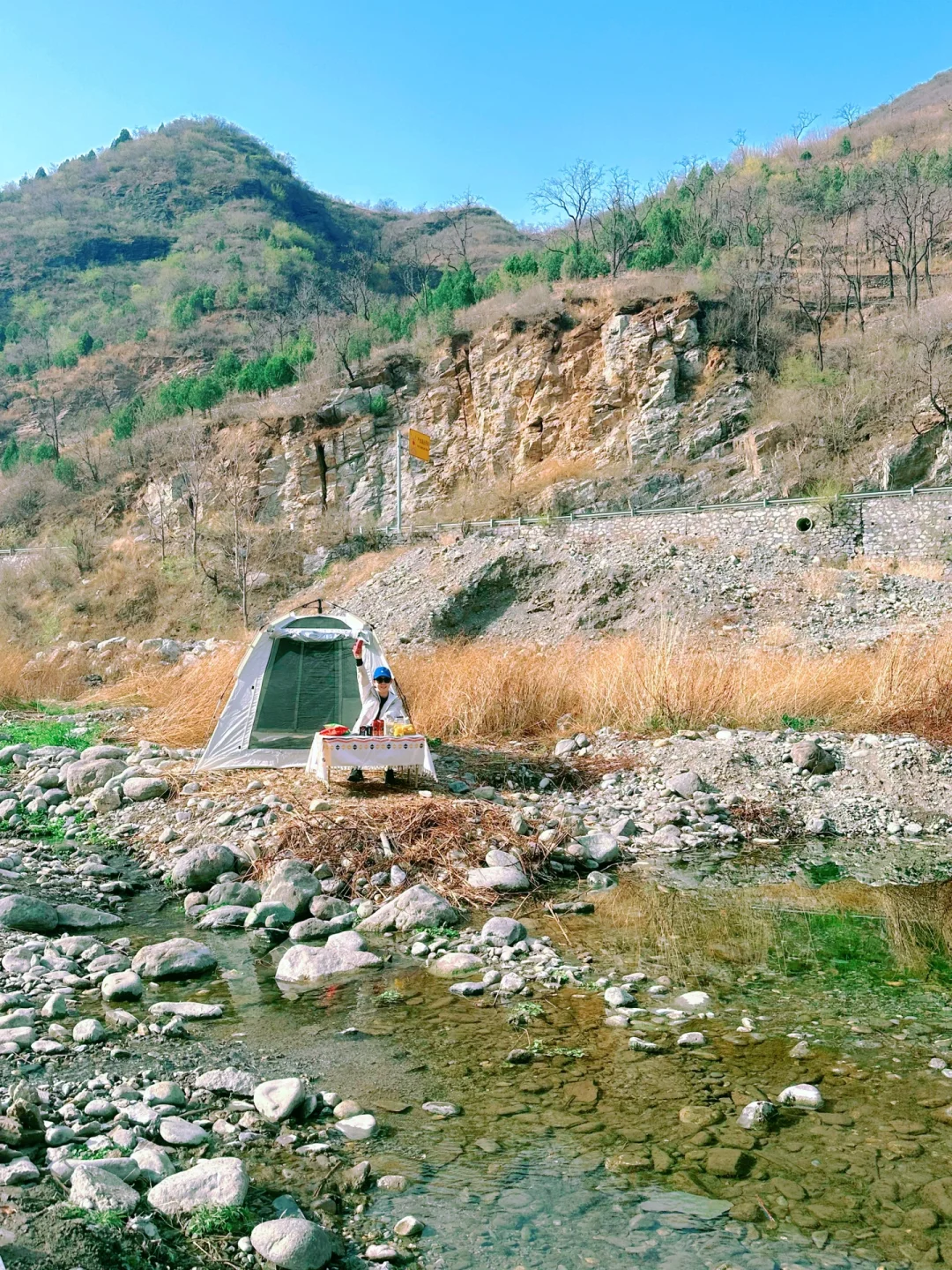 🧭导航“黑龙关村”,过了健身器材下坡停车或者延石子路往里面开在河边扎营⛺️