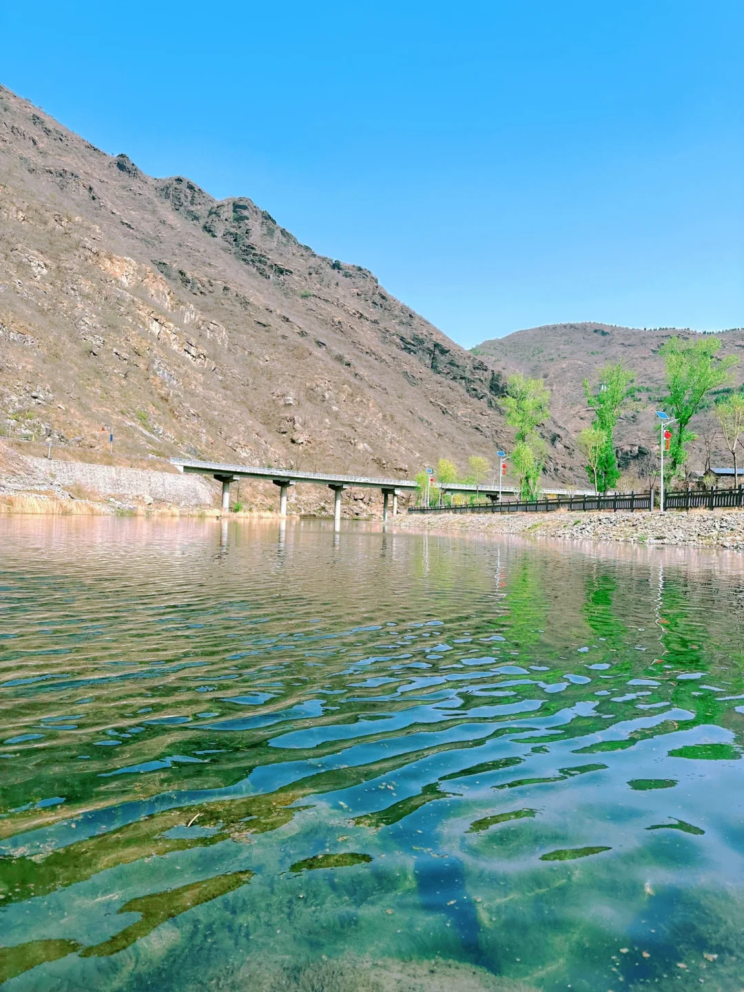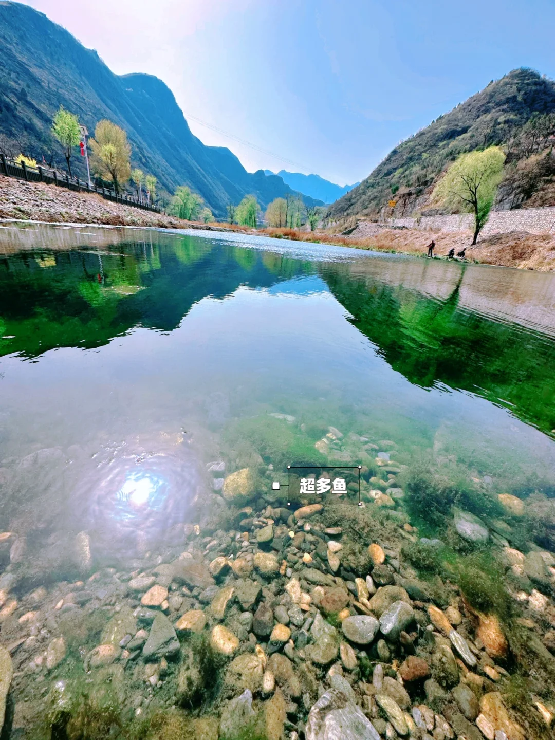 🌈水质清澈,阳光下如一块碧玉,有深有浅,超多小鱼,可以带着渔网,还有许多蝌蚪