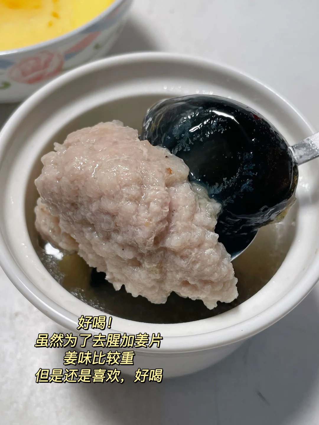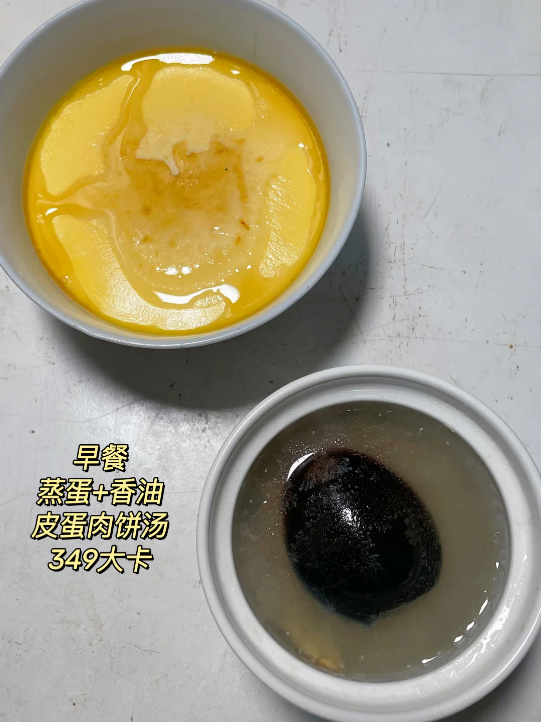 早 皮蛋肉饼汤+蒸蛋