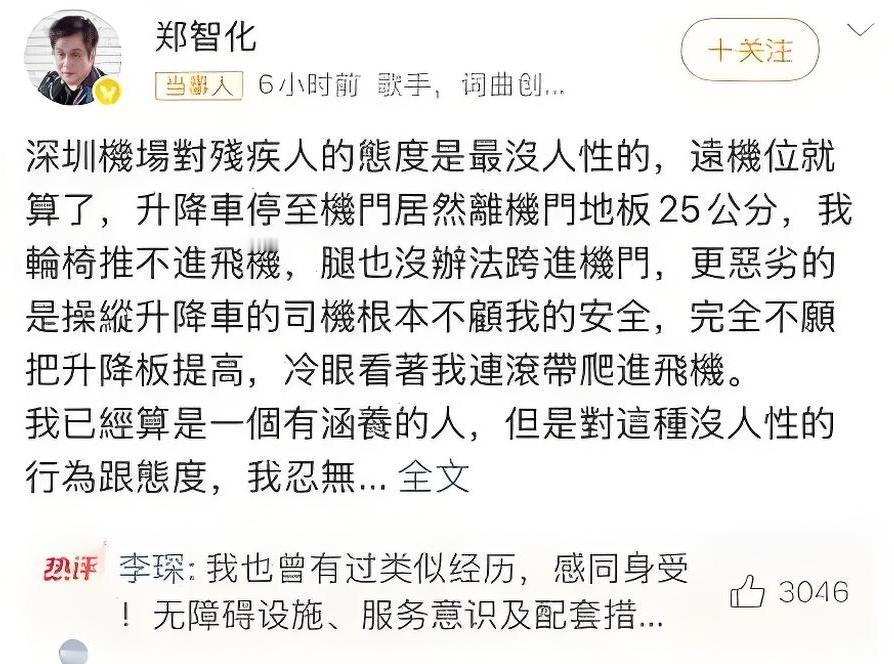 郑智化这意思不就是想说,他是文明人我们是野蛮人呗! 郑智化登机风波后首次露面,在接受台媒采访时话里有话的说: “文明跟野蛮永远没办法沟通,懂我意思吗?” 前段时间,郑智化一文怒斥深圳机场让他连滚带爬登机被冲上热搜。刚开始所有人都同情和支持他,但深圳机场放出监控录像后网友几乎一边倒,认为深圳机场没有任何问题,郑智化把所有人骗了。视频公开后郑智化发文道歉,称自己用词不当。但从今天台媒的采访来看,郑智化的道歉似乎并不太真诚!