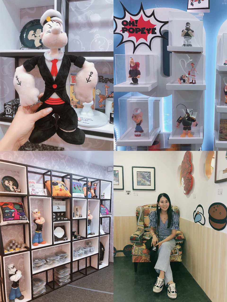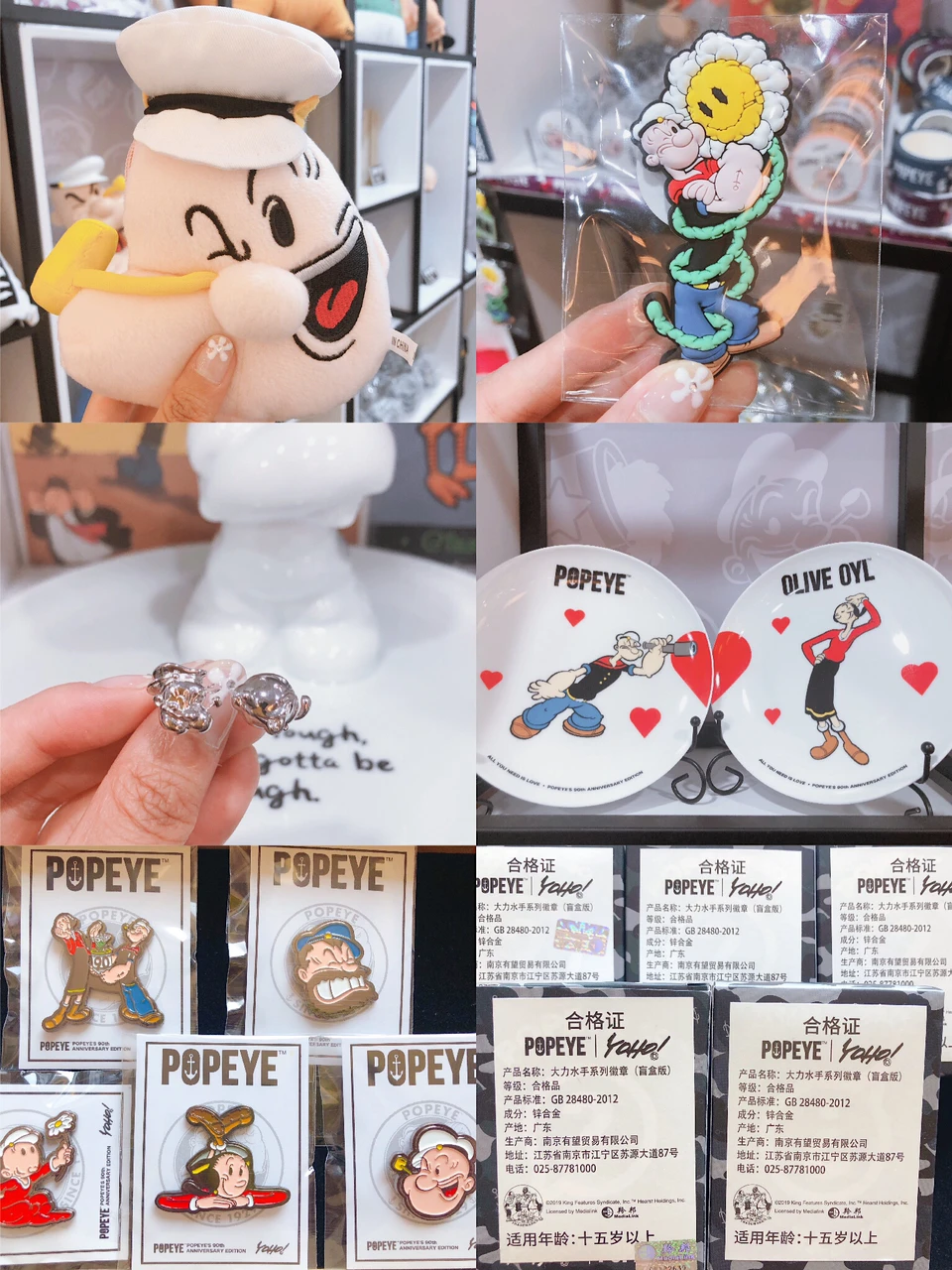 逛完主展区可以去地下一层逛一逛商品展区,众多著名艺术家联名设计的百余款大力水手90周年潮流艺术周边在展期内限量发售哦。除了赠送的大力水手徽章盲盒,我另外买了四个盲盒,29元一个,大力水手零钱包39元/个,小姐姐简直不能再nice了🌸她让我挑选了自己喜欢的5个经典款徽章,她说下周就不能随意挑选了呢,喜欢的大朋友小朋友抓紧喽😁