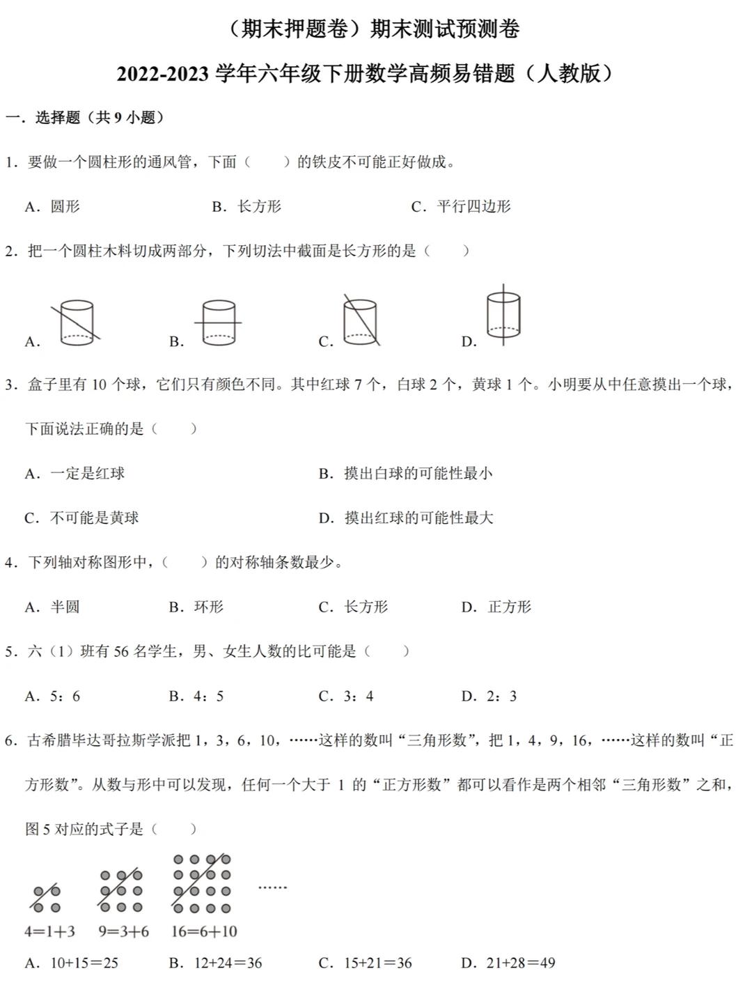 🚀六年级数学下册公式总结,期末考试前一定要掌握好🚀