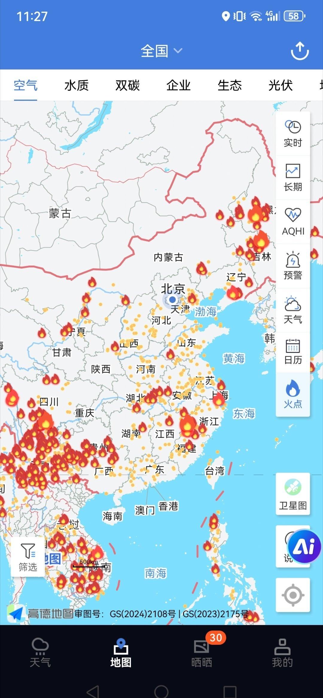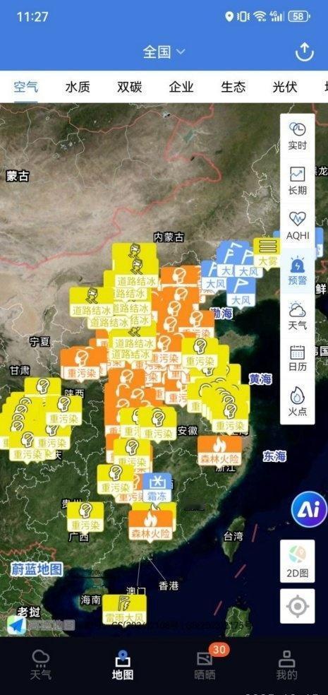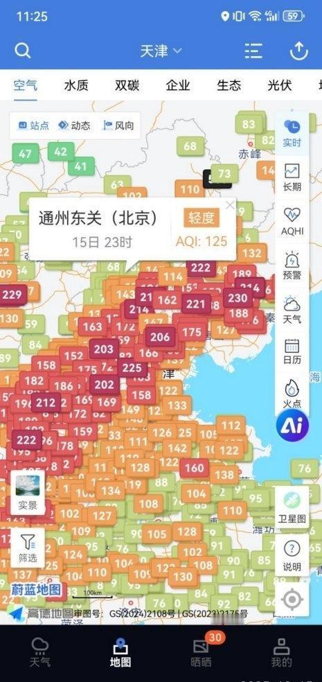 入夜扩散不利,当前京东出现轻霾。明晨扩散有利,北京空气质量改善。但周三开始转差,周四周五可能出现中度污染。 当前山前平原北部有霾,汾渭平原部分站点污染较重。全国共计88个城市发布重污染天气预警,涉及52个橙色、36个黄色: 天津市发布橙色预警; 重庆市发布黄色预警; 河南省9个城市发布橙色预警; 河北省8个城市发布橙色预警; 湖北省7个城市发布橙色预警,4个城市发布黄色预警; 山东省6个城市发布橙色预警,1个城市发布黄色预警; 安徽省5个城市发布橙色预警; 湖南省4个城市发布橙色预警,2个城市发布黄色预警; 山西省4个城市发布橙色预警; 新疆省3个城市发布橙色预警,1个城市发布黄色预警; 陕西省3个城市发布橙色预警; 江苏省2个城市发布橙色预警,11个城市发布黄色预警; 四川省14个城市发布黄色预警; 浙江省1个城市发布黄色预警; 广西省1个城市发布黄色预警。 蔚蓝地图实景。2025年12月15日23点,北京市,晴,-4℃,湿度77%,风力1级,风向东北风,空气质量良。
