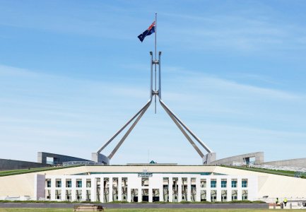 12月15日,澳大利亚首都堪培拉的国会大厦降半旗悼念悉尼邦迪滩枪击事件遇难者。新华社发