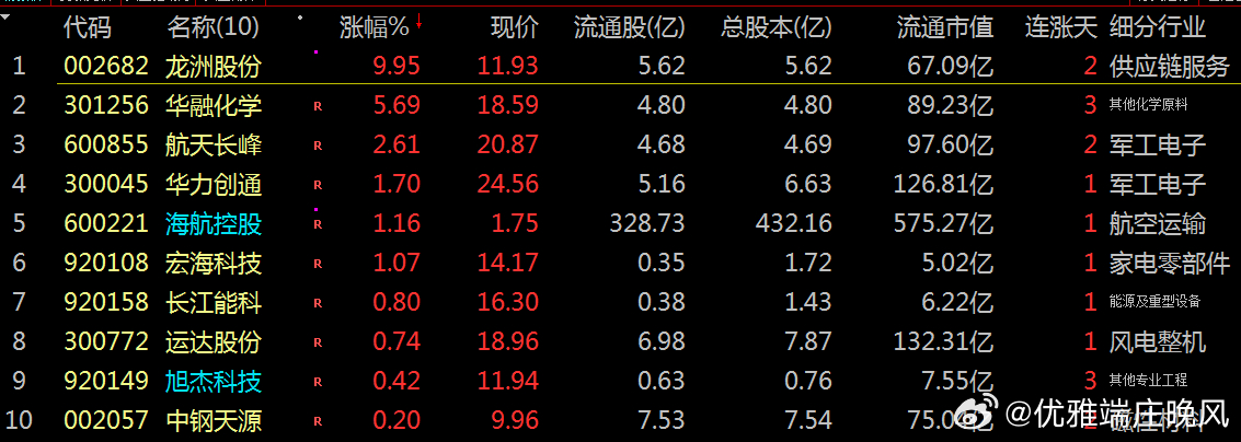 【财富晚茶】十大利好(12.15):追寻沪深北市十大利好信息的股票导语:作者系《网易号》优质财经领域创作者。曾经原创作者和知名网易号旅游领域创作者。大跨度行业等的写作,颇受网友喜爱。作品发表于 2025.12.15.21:18 优雅端庄晚风。编者的话:追寻市场:蛛丝马迹动态趋势。今天主题:【财富晚茶】十大利好(12.15):追寻沪深北市十大利好信息的股票。最新市场:新鲜出炉:2025.12.15.21:18十大利好股票参考。偏重其中:机构分析、龙虎榜数据、高成长性潜力等。综合筛选:涵盖供应链、化学原料、军工等领域。兼顾短期:热点长期估值。每个股票:附简要利好原因。一、主力资金:市场表现前三佳股票龙洲股份(002682) 华融化学(301256) 航天长峰(600855)二、主力资金:十大利好信息的股票1、运达股份(300772)核心逻辑:中国新能源拓荒创新领军者。晚间点评:吉林白城100兆瓦风电项目提前完成,为全球最大绿色柠檬酸基地提供绿电。2、华融化学(301256)核心逻辑:氢氧化钾绿色循环综合利用头部企业。晚间点评:探索化工领域环保新技术,提升可持续发展能力。3、龙洲股份(002682)核心逻辑:卓越中国道路运输市场领导品牌。晚间点评:切入商业航天配套,为低轨星座提供地面站服务。4、海航控股(600221)核心逻辑:中国内地第一家唯一SKYTRAX五星航空复苏受益者。晚间点评:高成长潜力股,技术/政策驱动。5、航天长峰(600855)核心逻辑:中国航天高端技术应用成果AI技术突破领航者。晚间点评:卫星测控系统参与火箭发射。6、华力创通(300045)核心逻辑:国内首批国防军工准入资质头部企业。晚间点评:多模卫星通信芯片量产,配套北斗导航系统。7、中钢天源(002057)核心逻辑:世界一流新材料头部企业。晚间点评:磁性材料龙头,布局固态电池。8、旭杰科技(920149)核心逻辑。绿色装配式建筑头部企业。晚间点评:公司主要从事分布式光伏电站系统集成业务。控股子公司的SIP/LC板材贸易在澳洲市场占有率排名靠前。重视技术积累及研发,研发工程师均拥有多年从事光伏电站集成业务丰富经验。9、宏海科技(920108)核心逻辑:中国家电结构件较早应用储能焊技术领航者。晚间点评:通过脉冲电流实现高精度焊接,提升底盘焊接产能20%以上,焊接强度达7000N?。数控钣金技术布局:可加工铝板、铜板等多种材料,应用于安防、医疗等领域,泰国子公司作为核心基地,2024年境外收入达5438万元。10、长江能科(920158)核心逻辑:电脱设备市占率国内第一。晚间点评:能源化工专用设备“隐形冠军”。电脱设备是原油外输及炼化环节的关键设备,客户覆盖中国石油、中国石化等国内巨头,输出能源装备领域的“中国方案”。成为北交所“高端装备+绿色低碳+国际合作”赛道的标杆企业。风险提示1、部分科技板块亦或估值偏高需留意外部环境。2、美联储政策中美贸易摩擦内部经济不确定性。三、主力资金:其他利好信息的股票1、低能大束流离子先导基电 (600641)核心逻辑:国内离子注入机的设备领军者。晚间点评:通过收购凯世通切入离子注入机领域,其低能大束流离子注入机已进入中芯国际供应链,2025年新签订单超20亿元,是国产离子注入设备的重要突破点。2、集成电路PECVD拓荆科技 (688072)核心逻辑:国内唯一产业化应用的集成电路PECVD、SACVD 设备厂商。晚间点评:专注于薄膜沉积设备,其PECVD设备已进入14nm产线,2025年新签订单同比增长超100%,是国产薄膜沉积设备的重要供应商。四、 创作不易:优质网易财经作者投资投机迷茫之中:给予尽可能有帮助:资本市场风险自负。(优雅端庄晚风《网易号》财经领域创作者和原创作者 违者必究)