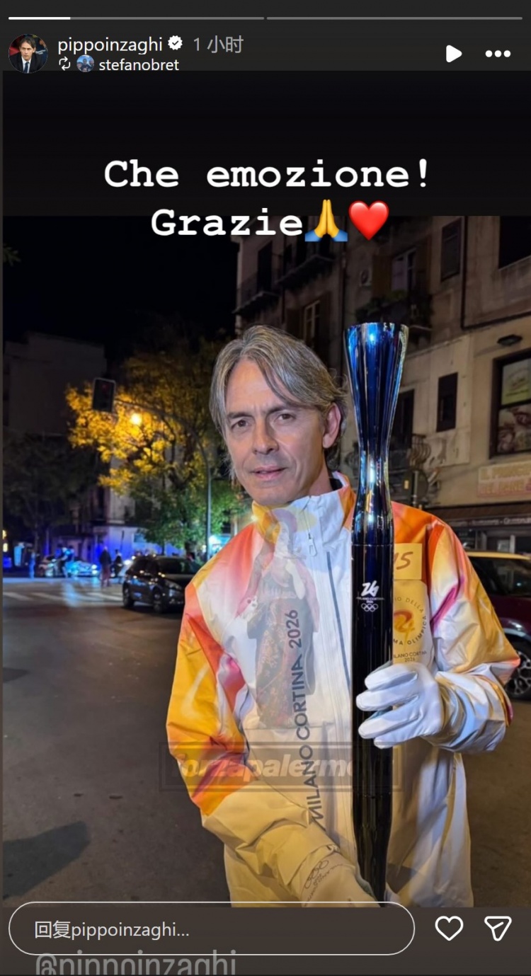 因扎吉参加2026年米兰冬奥会火炬传奇,他在社交媒体上晒出照片,配文:“多么激动人心的时刻!感谢。”