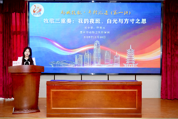 近日,惠州市动物卫生监督所精心打造的“鹅城牧歌·青衿论道”青年思想交流平台正式启动并成功举办首期活动。该所负责人在开讲仪式上强调,此平台旨在为全所青年打造一个激荡思想、淬炼本领的熔炉,期望通过持续“论道”,锻造一支堪当重任的青年队伍,为惠州畜牧业高质量发展注入澎湃青春动能。