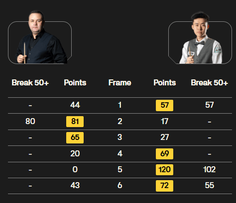 全场比赛,常冰玉打出一杆破百(102)和两杆50+(57、55),马奎尔打出一杆50+(80)。